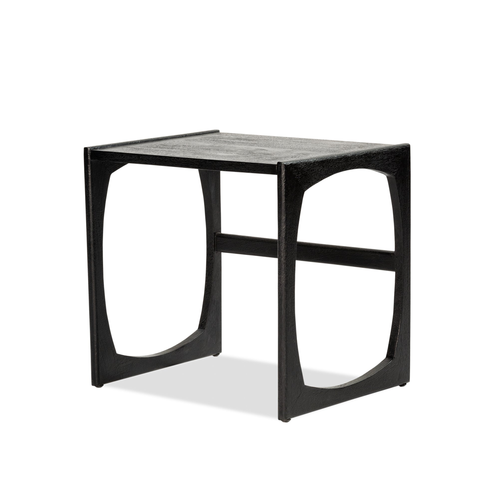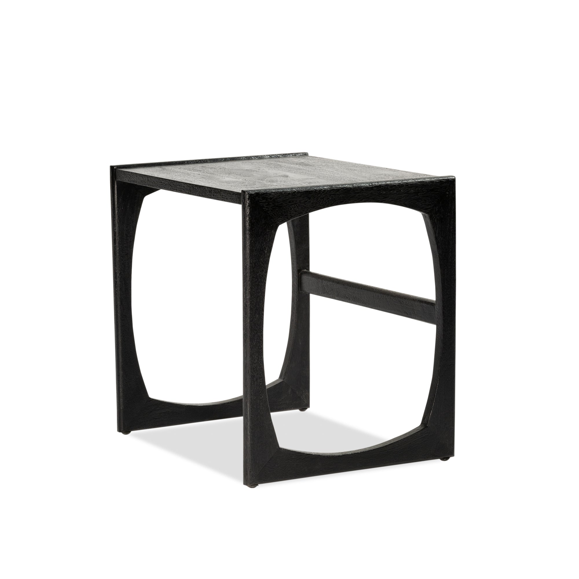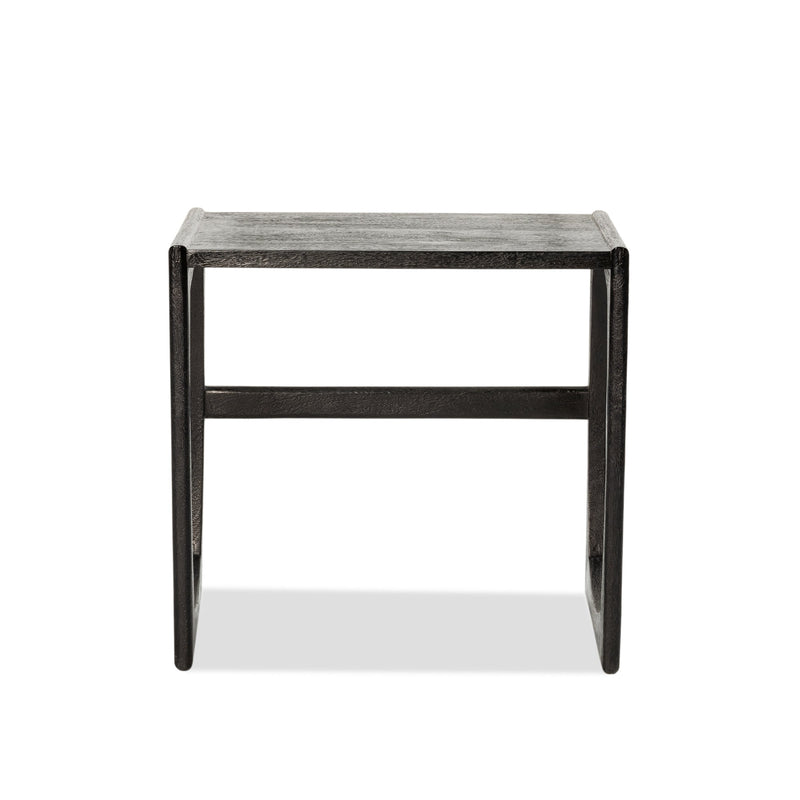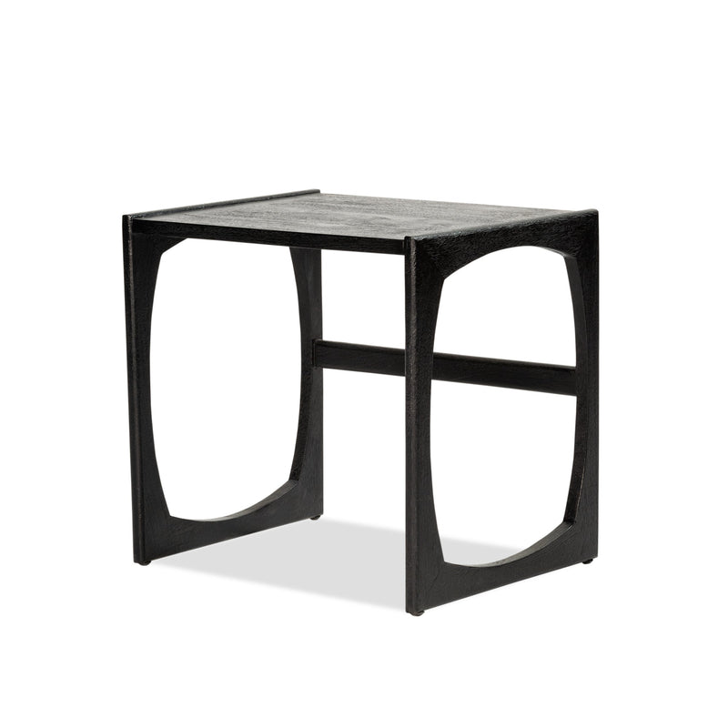 Constructed in solid mango wood with Black finish. Simple cube shape with feature open side panels, available in three different sizes.