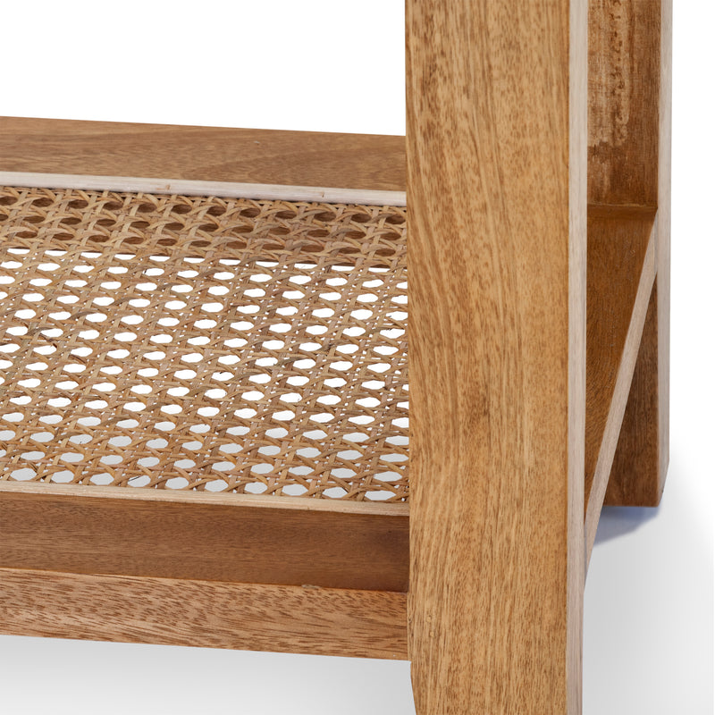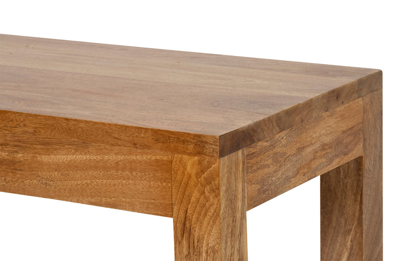 Simple and classic rectangular shape constructed in solid mango wood and Natural Sealed finish. Natural Rattan underlay.