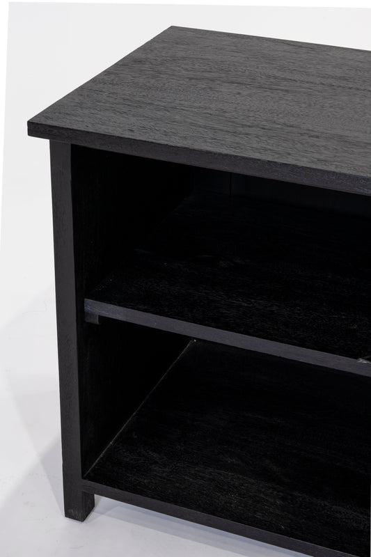 - Mango wood, black finish and natural rattan inserts. Hafele superior German engineered hardware.