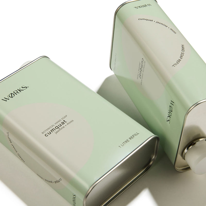 The Cumquat Hand Soap Refill offers the same bright, refreshing cleanse in a practical refill format. Fresh cumquat is softened by floral jasmine and grounded with moss, creating a lightly verdant scent while gently cleansing the skin.