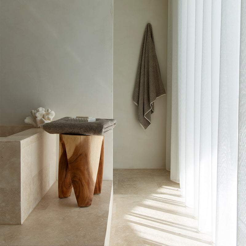 Constructed from raw meh wood with three tapered legs. This hardwood stool is highly durable. Colours/finishes between items may vary and some slightly cracking can occur, due to the natural nature of the timber.