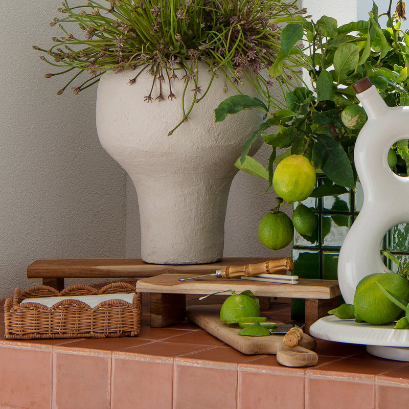 Made from durable teak wood, this versatile wooden stand is the perfect piece for the kitchen or bathroom, for entertaining to serve food or add layers to a grazing table. This teak serving stand will find a home anywhere!