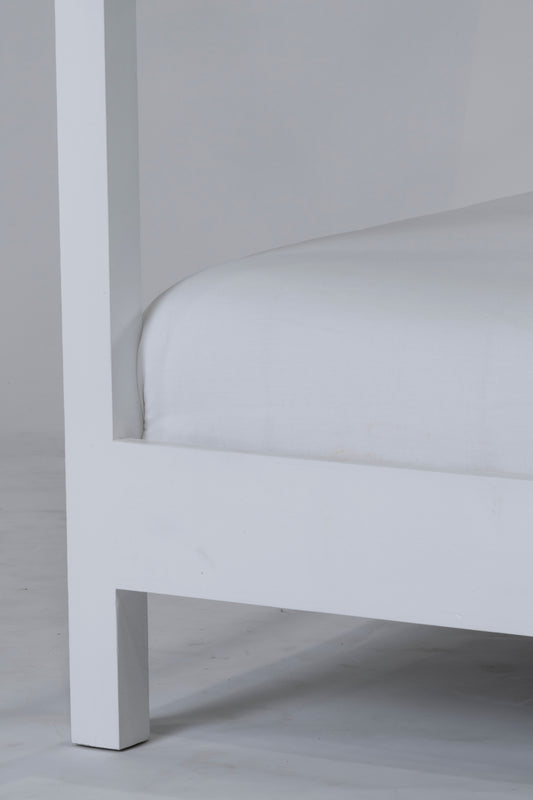 Simple and classic design, the Villa 4 Poster Bed is a new and improved design to the signature Empire Retreat 4 Poster Bed. Featuring four vertical posts that sit flat on each corner, joined at the top by four beams and a wooden head board.