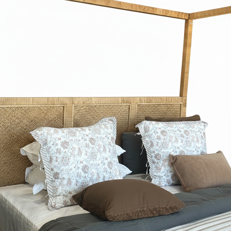 The Pacific Rattan Bed brings a relaxed coastal elegance to the bedroom with its striking four-poster silhouette. Crafted with a solid mahogany wood frame and detailed with handwoven rattan panels, this piece celebrates natural texture and timeless craftsmanship. Its warm, organic finish creates a calm retreat while offering strong, dependable support for everyday living.