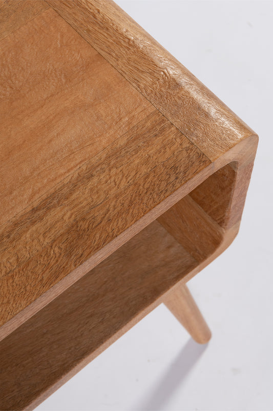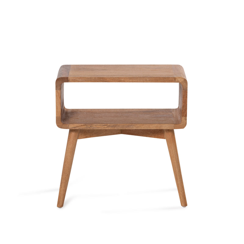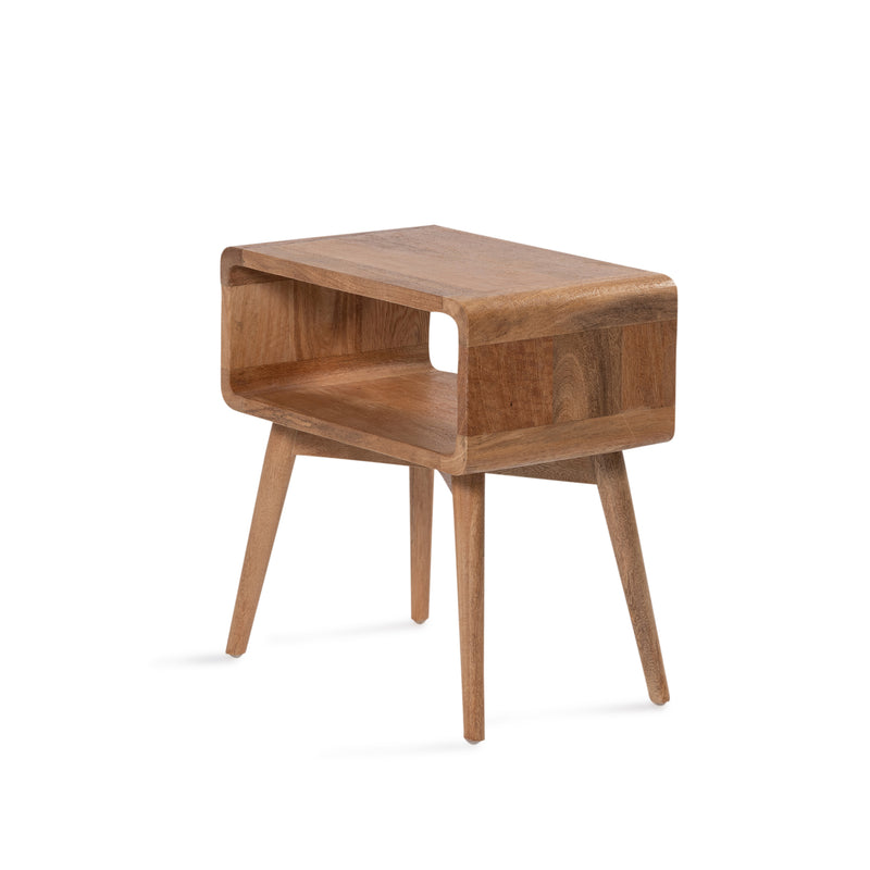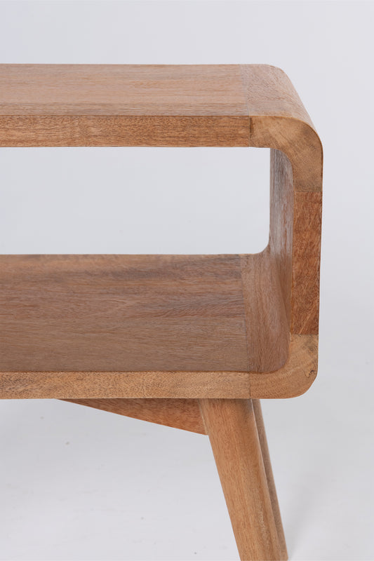 The Modular bedside features a classic rounded design with open storage, simple yet functional. Made from mango wood in rustic matte finish.