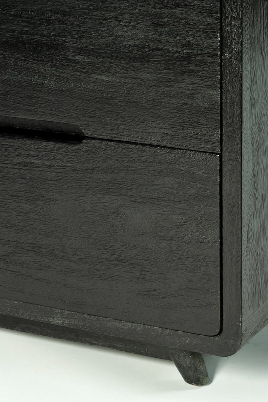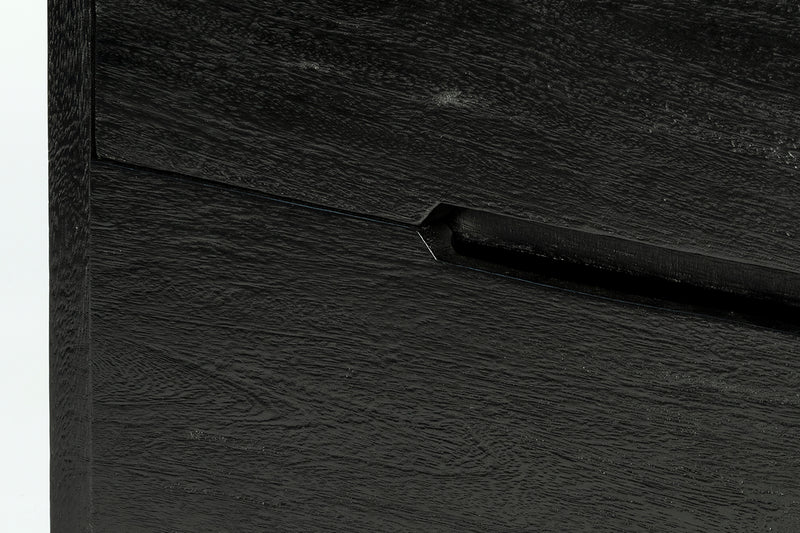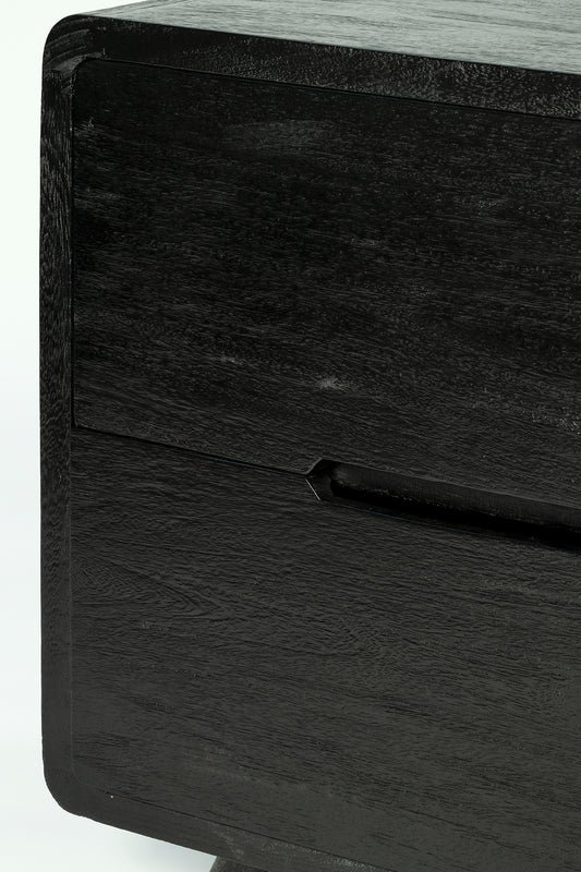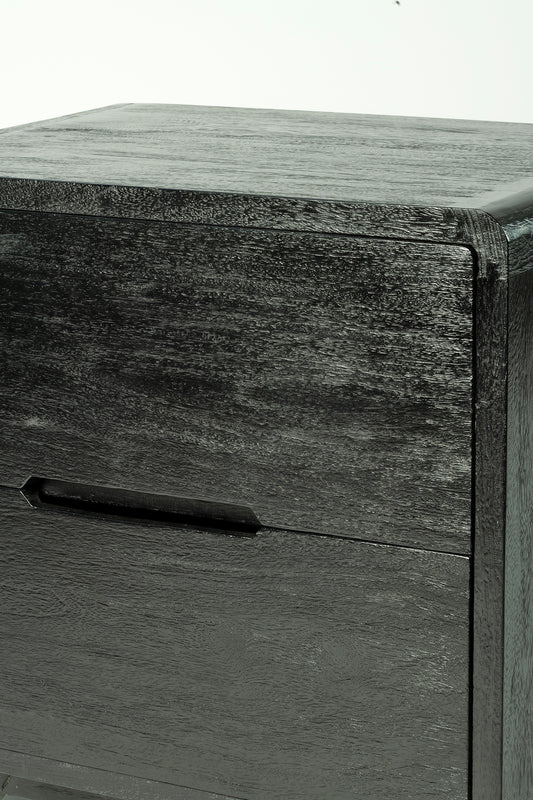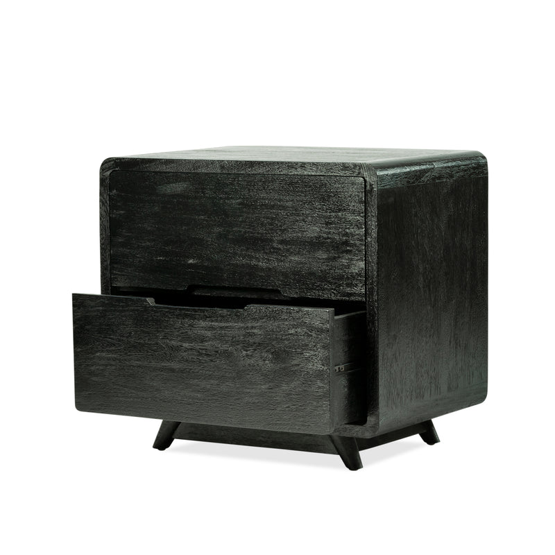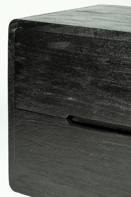 Made from solid mango wood in a Black finish. Two large solid drawers with cut out handle. Pictured is the Penfolds bedside 2x1 (two drawers high and one drawer wide). Please refer to the Penfolds configuration information sheet for further options.