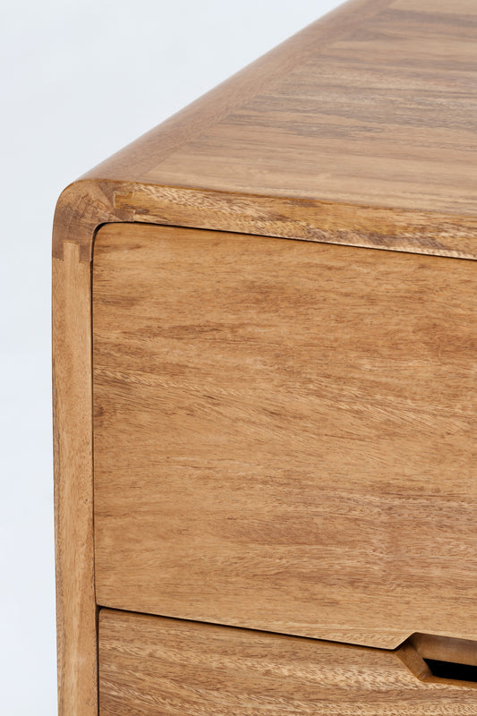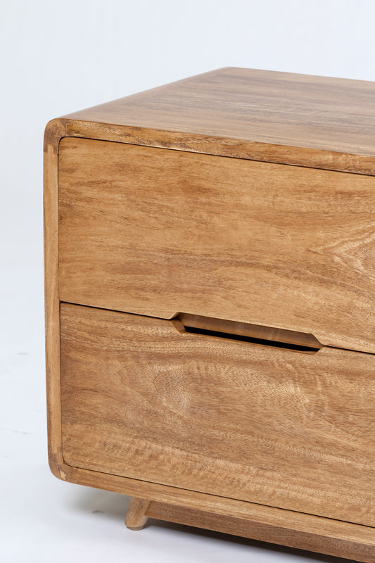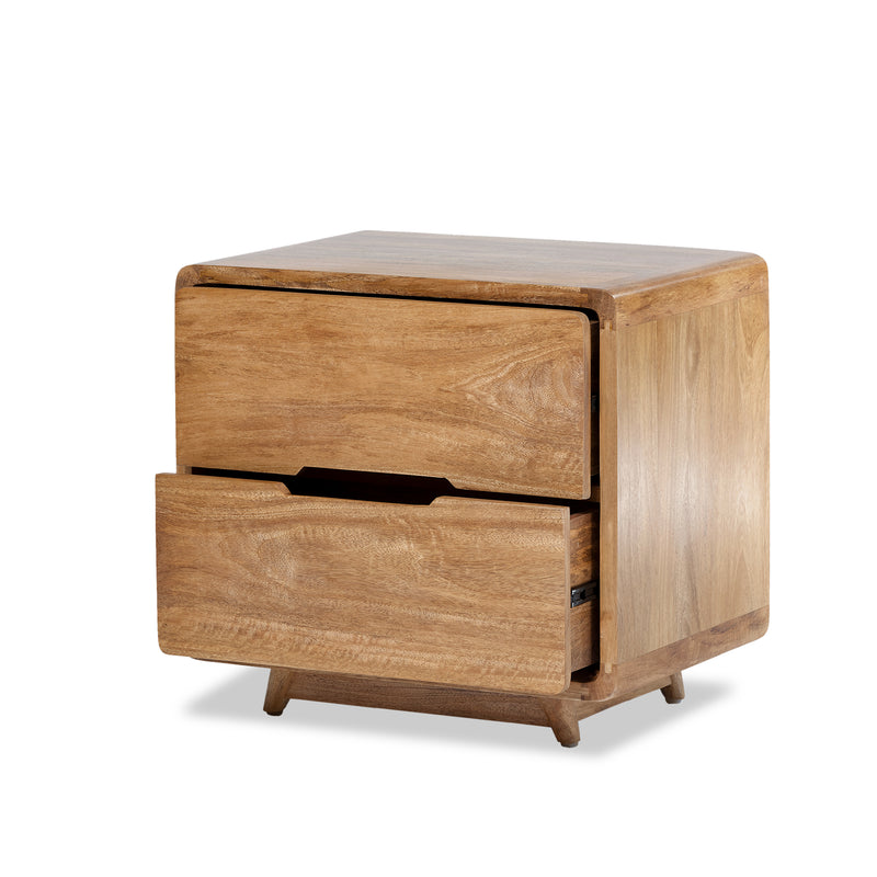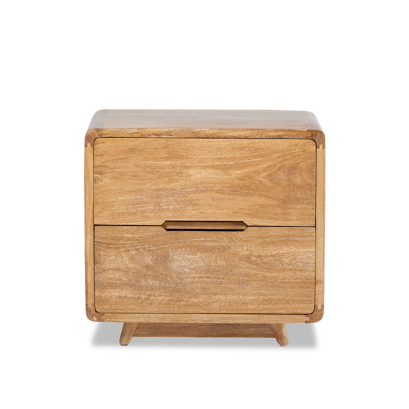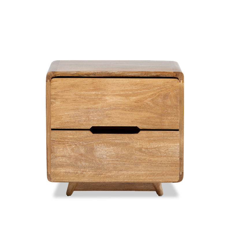 Made from solid mango wood in the Natural Sealed finish. Two large solid drawers with cut out handle. Pictured is the Penfolds bedside 2x1 (two drawers high and one drawer wide). Please refer to the Penfolds configuration information sheet for further options.