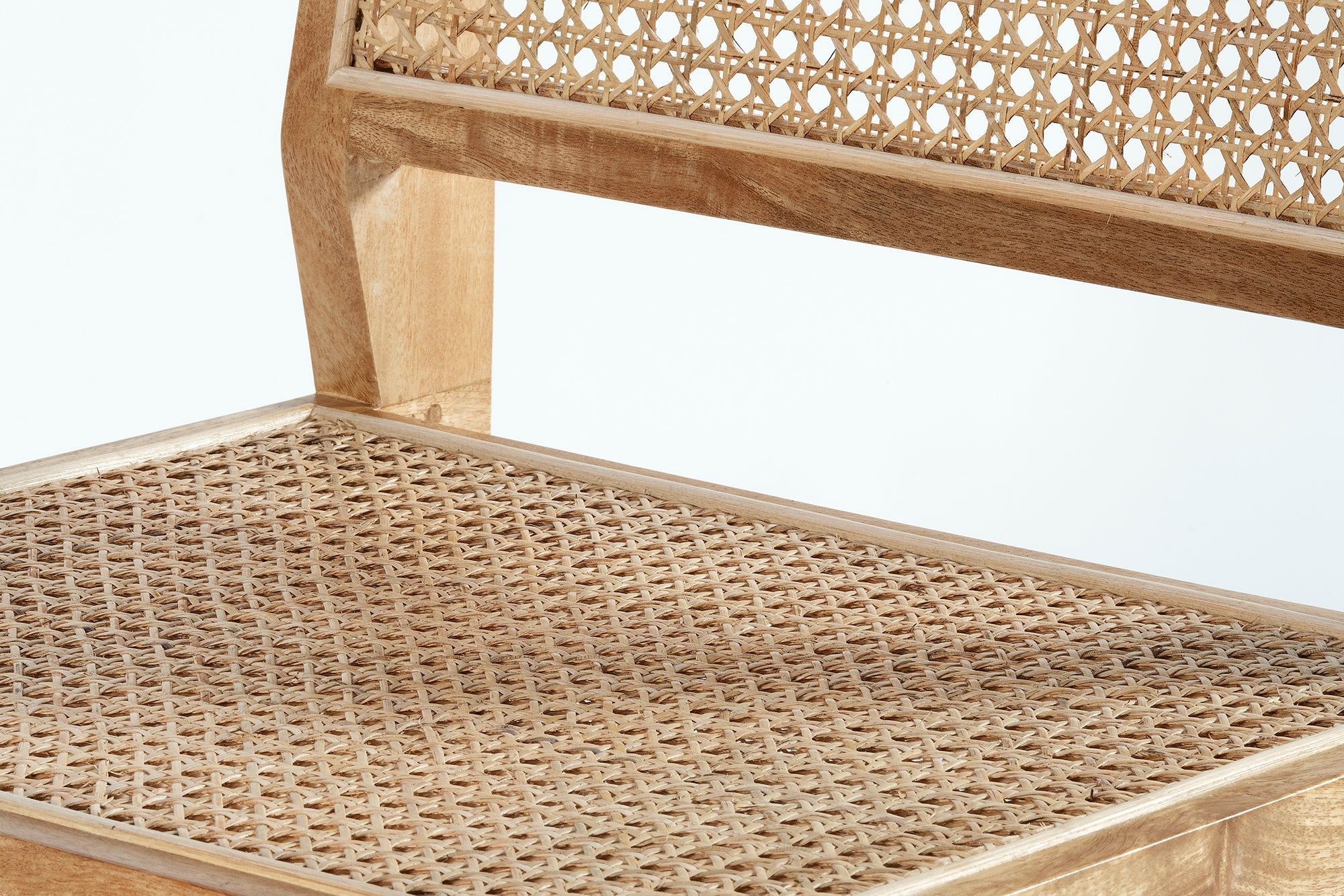 Belagio chair, made from mango wood in Natural Sealed finish frame. Complete with natural rattan back and seat.