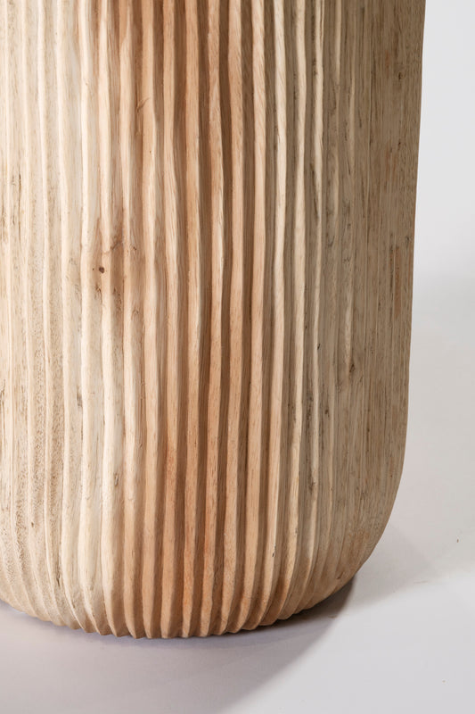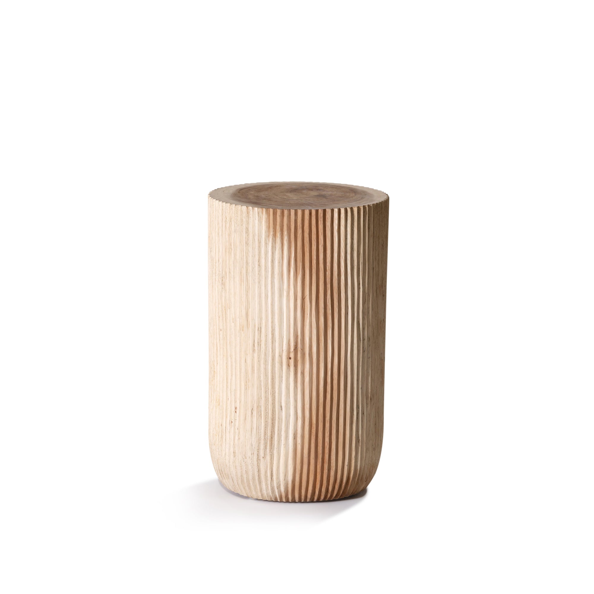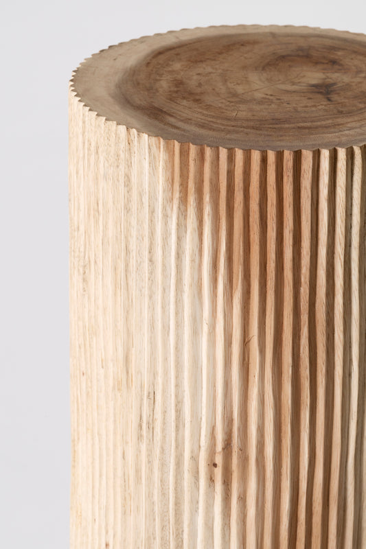 Constructed from raw meh wood with vertical stripe design, this hardwood stool is highly durable. Colours/finishes between items may vary and some slight cracking can occur, due to the natural nature of the timber.