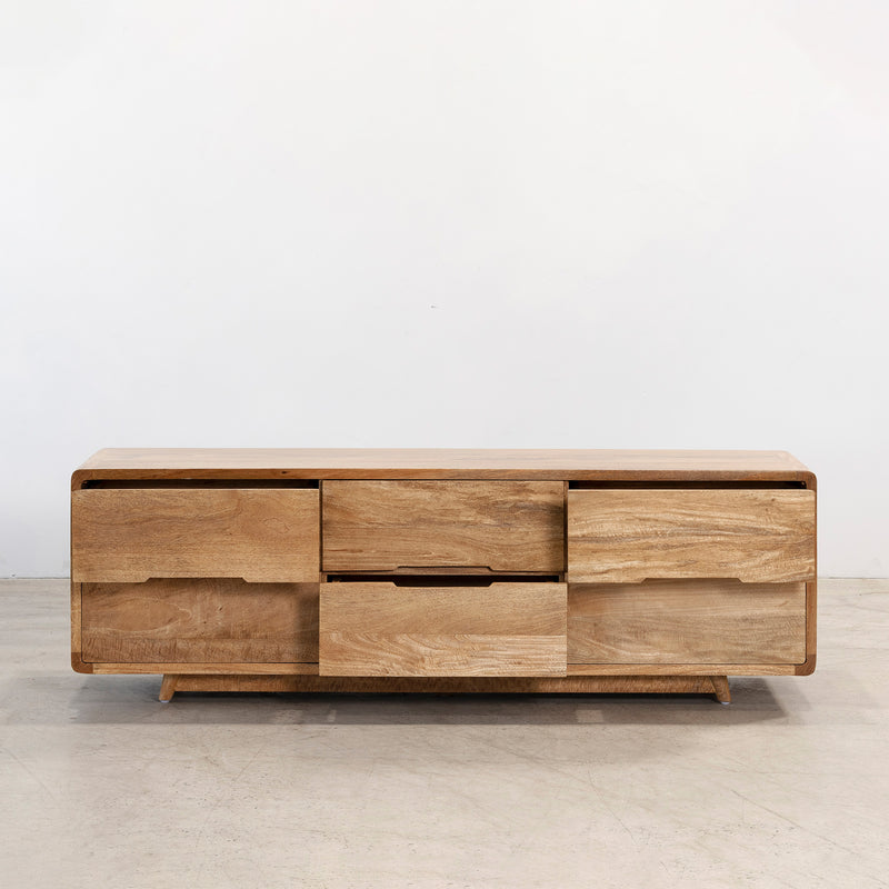 The Penfolds Chest is a refined expression of solid timber, defined by clean lines and softly rounded edges. Six generously proportioned drawers sit seamlessly within the frame, offering practical storage while allowing the natural grain to take focus. Set on a subtle recessed base, it feels grounded yet elevated, bringing warmth and quiet order to bedroom spaces. Please refer to the Penfolds configuration information sheet for further options.