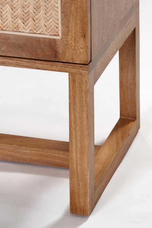 - Mango wood, natural sealed finish with natural rattan weave inserts, Hafele superior German engineered hardware.