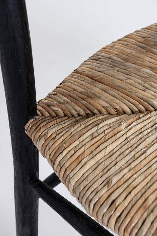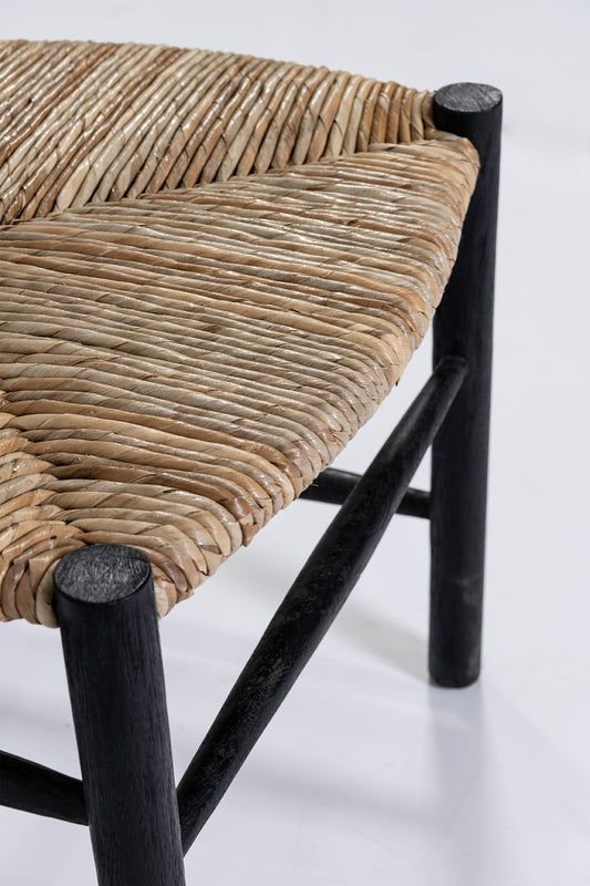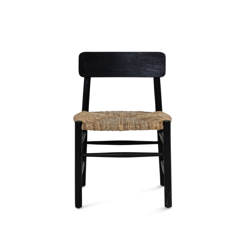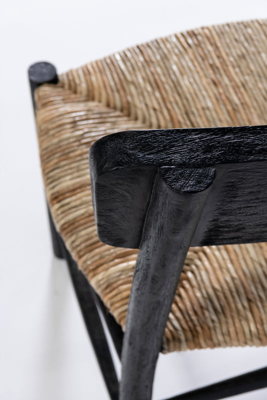 Wagner chair, made from mango wood with a black finish frame. Complete with natural rush seat for extra durability and support.