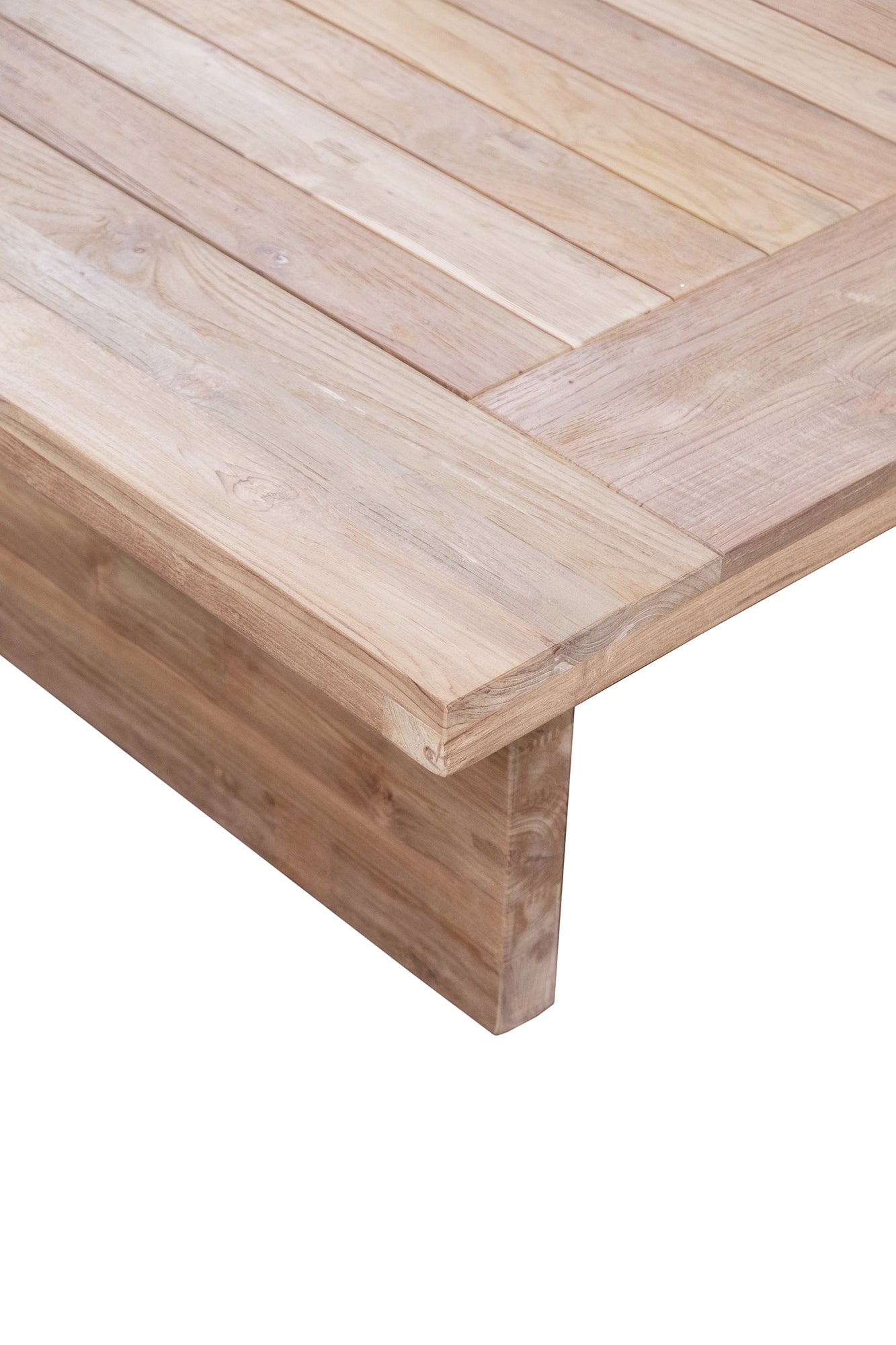 Grounded and understated, the Montauk rectangle Coffee Table is crafted from solid teak with a broad slatted top and substantial block legs that give it a strong, balanced presence. The clean, low profile highlights the natural grain and warm tone of the timber, making it a considered centrepiece for relaxed living spaces. Designed to sit effortlessly alongside the Montauk range, it suits indoor settings and covered outdoor areas with timeless ease.
