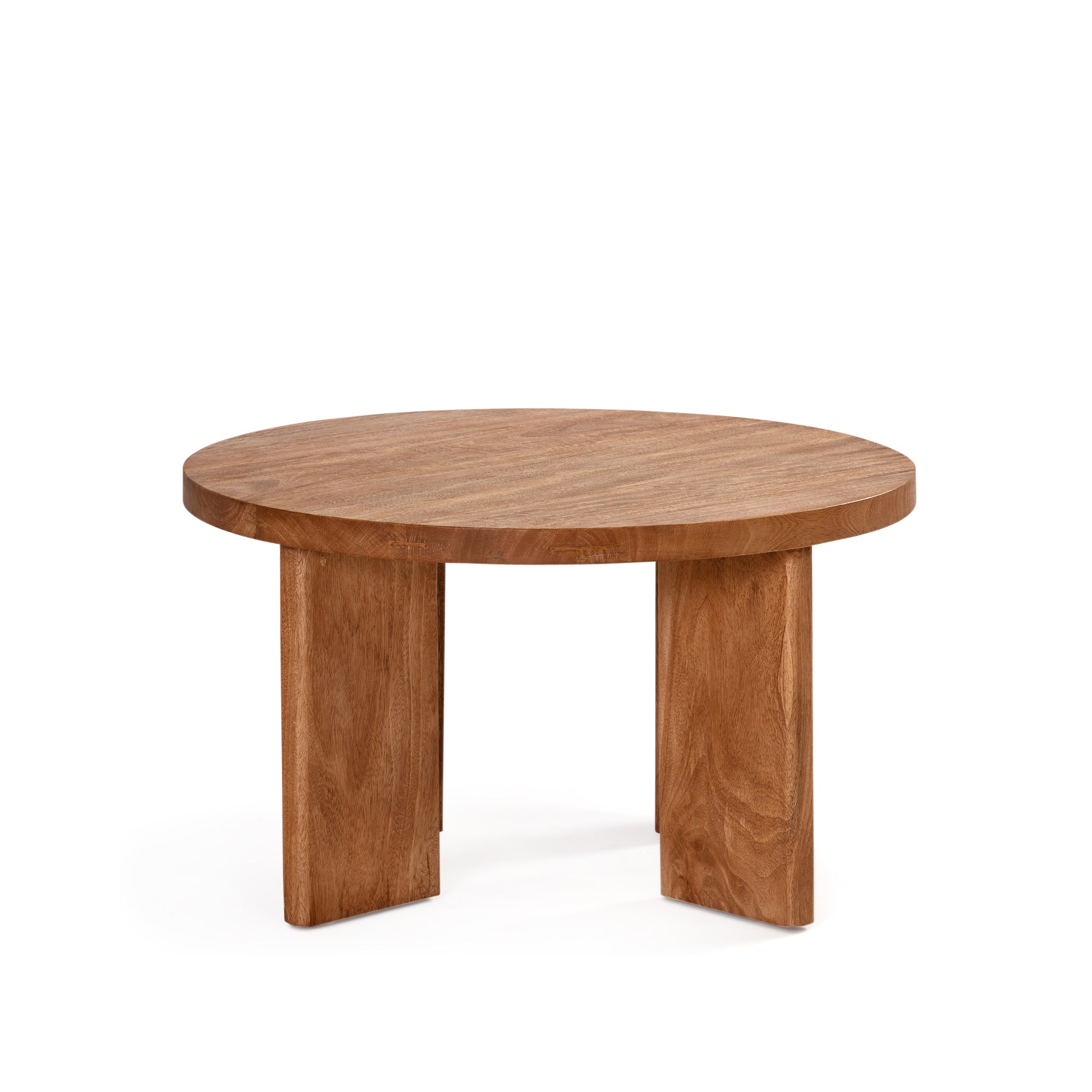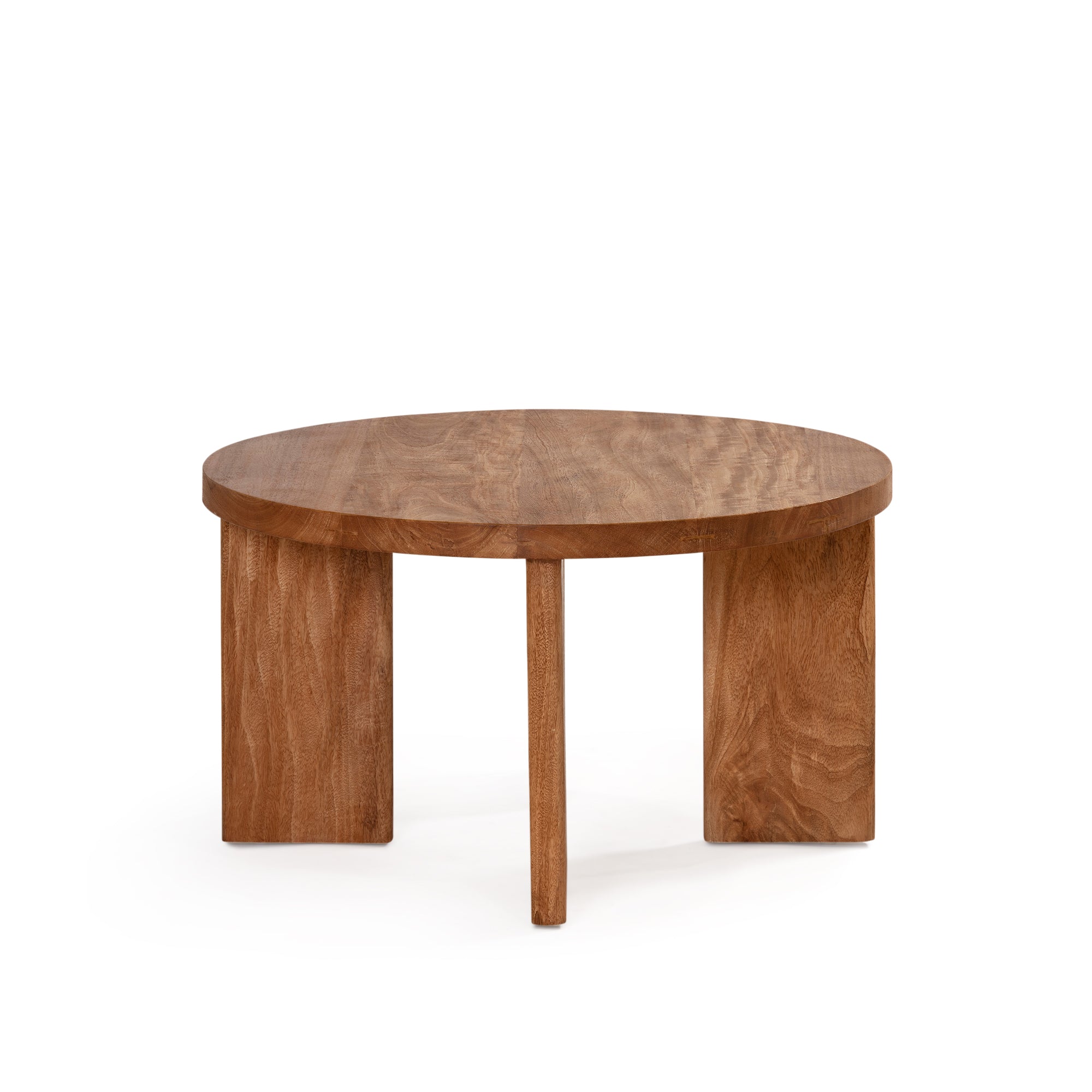 The West Coffee Table in Natural Sealed Mango Wood is a refined balance of form, function and versatility. Crafted from solid timber, its circular table top rests on four architecturally angled legs. Designed to be rotated, the table reveals different silhouettes, allowing the piece to subtly shift in character depending on its orientation.