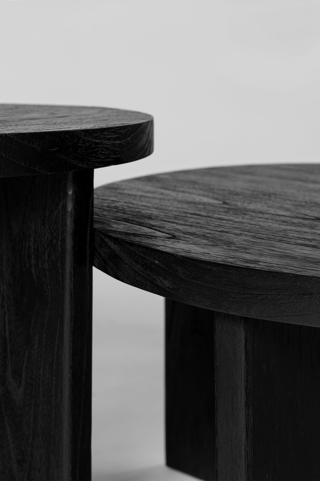 The West Side Table, constructed in sustainable mango wood with black finish. Featuring unique angled leg design.