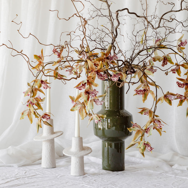 Elevate your home decor with the Paloma Candle Holder. Crafted from paper mache over aluminium, this unique piece adds a touch of sophistication and warmth to any room.