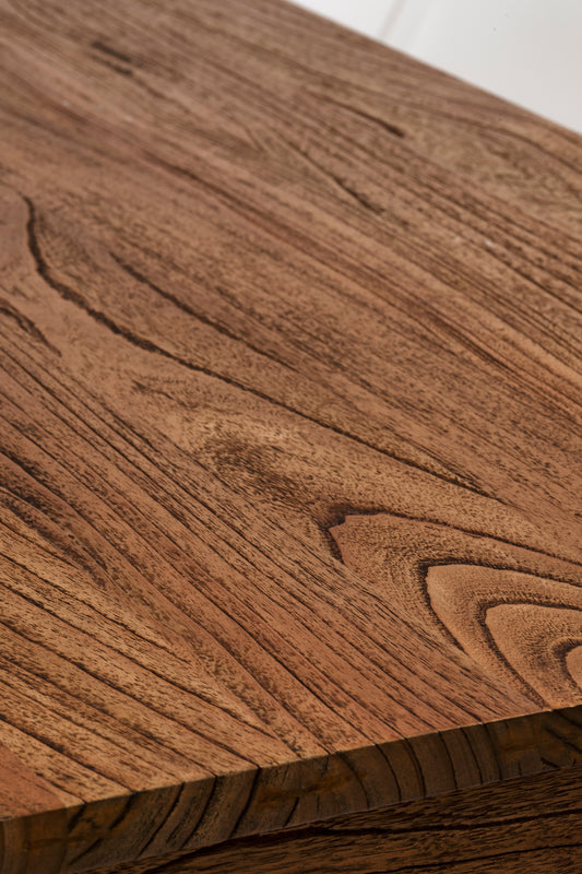 Simple and classic rectangular shape constructed in solid mindi wood with antique mindi finish. Available in five different sizes.