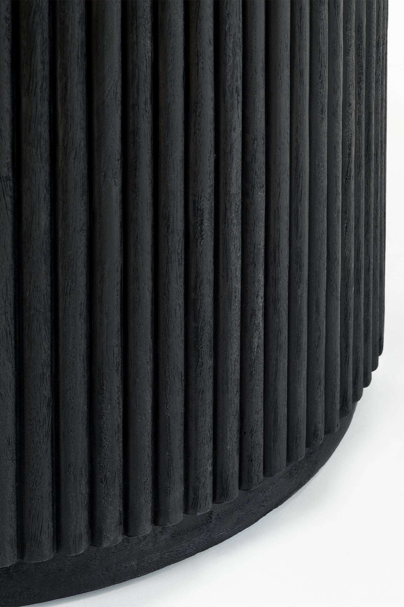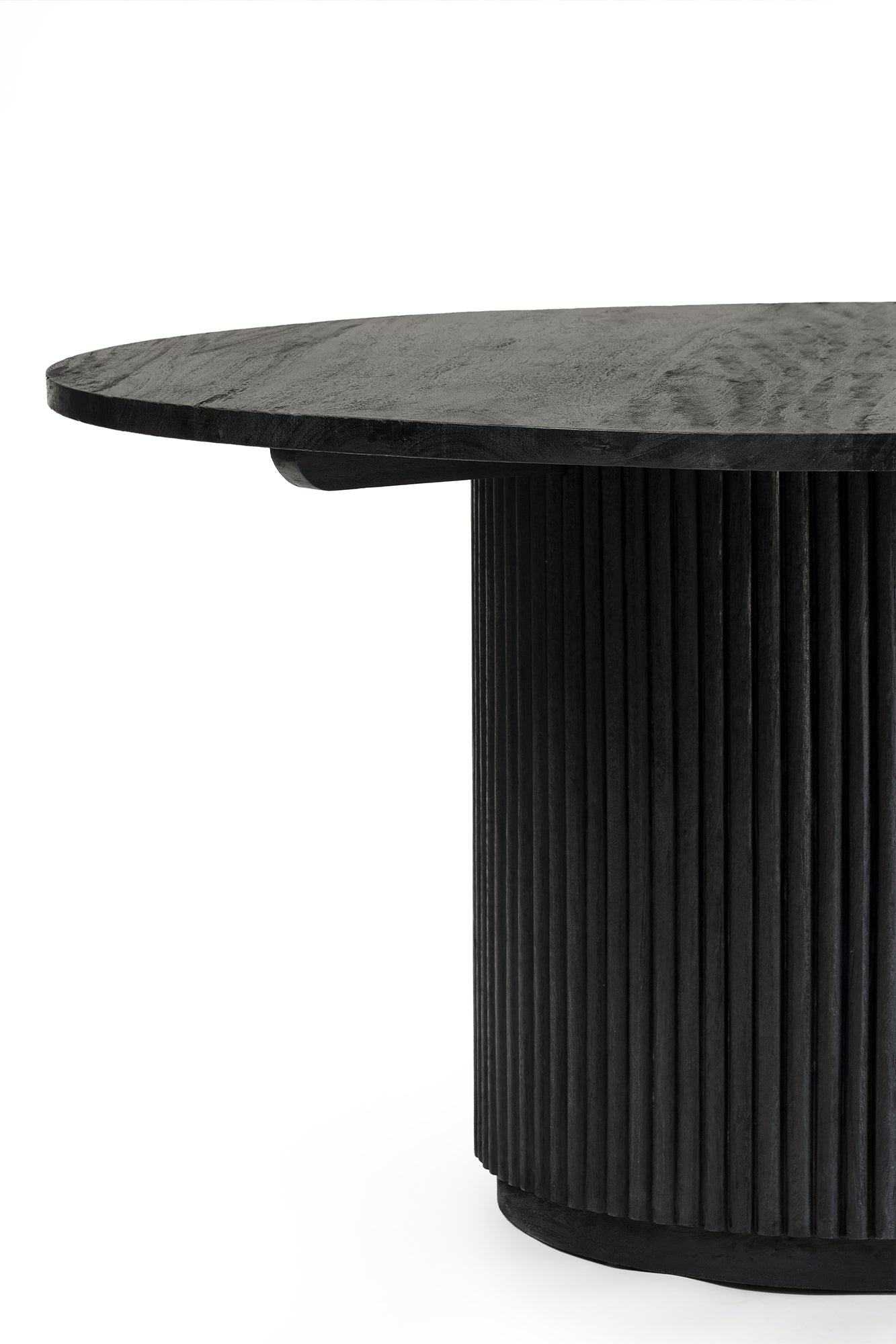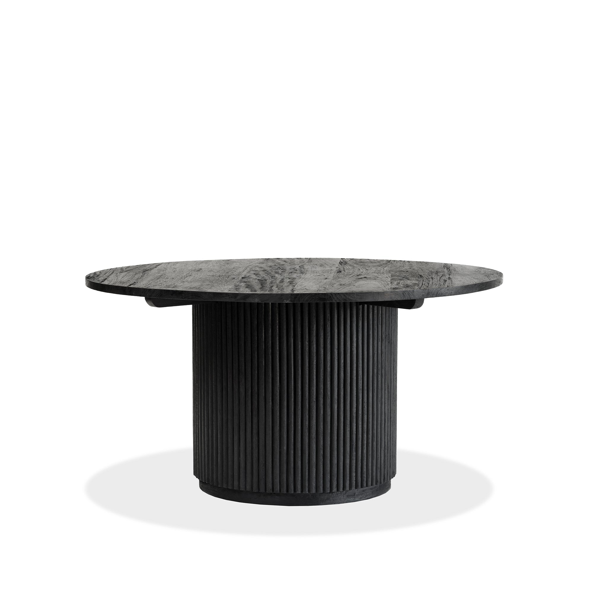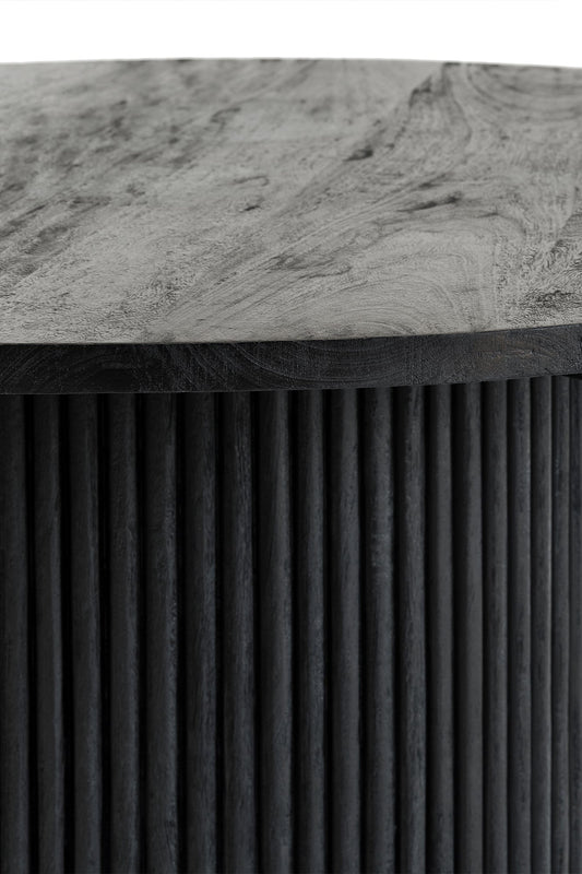 Built from solid mango wood in a Black finish. Round top with a solid ribbed pillar base.