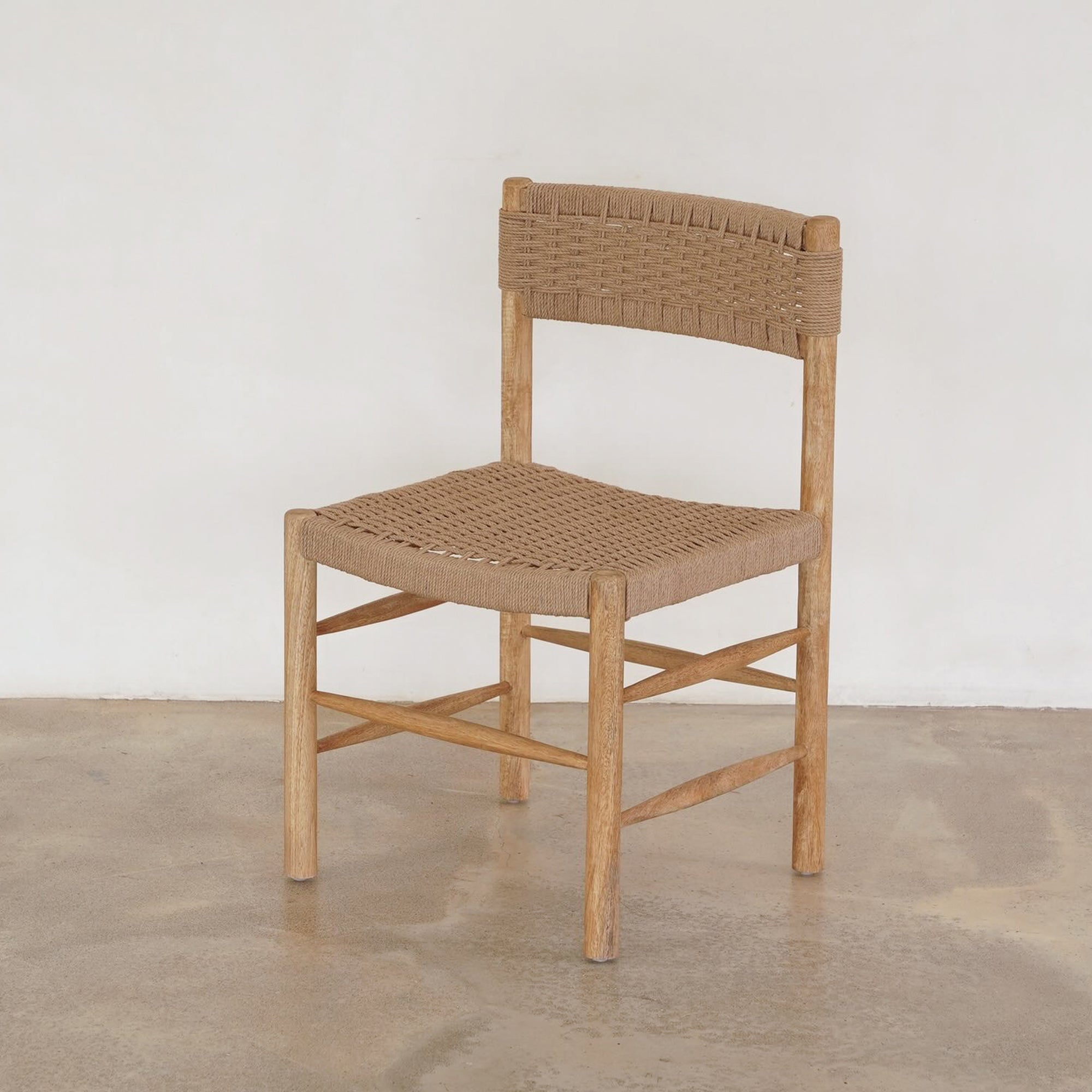 The Bruce dining chair blends our favourite mango wood in a rustic matte finish with a tight paper weave seat and curved backrest, perfect addition to any dining space.