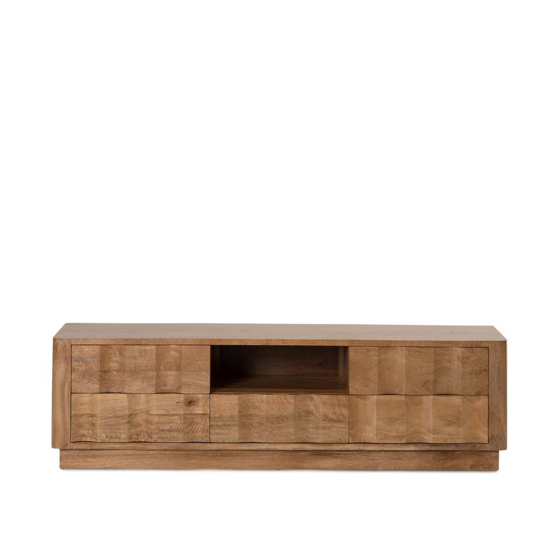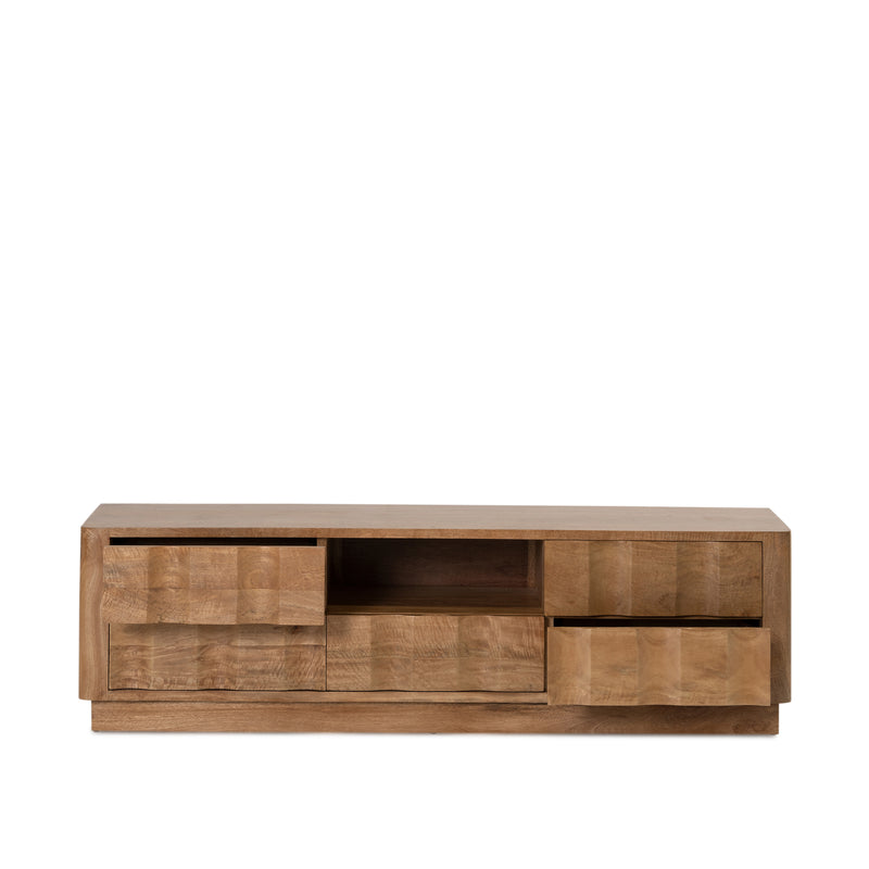 The Aimee Buffet 2x3 is made from solid mango wood with a natural sealed finish and scalloped detail for a classic, timeless look.