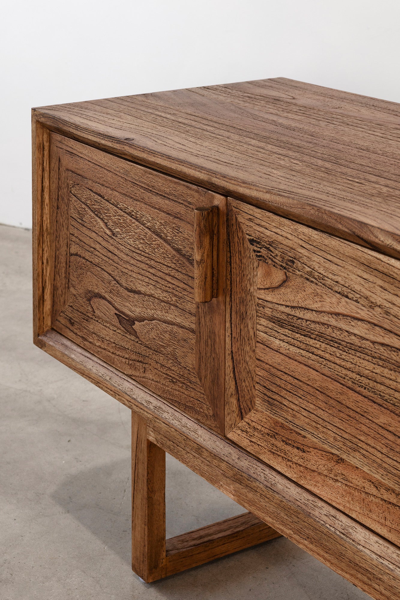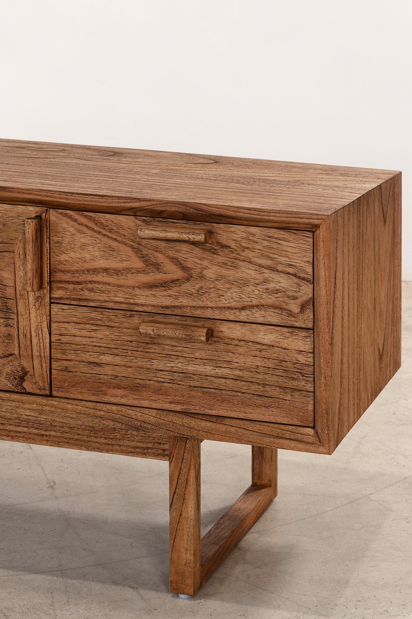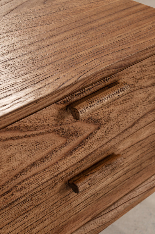 The Enzo Entertainment Unit is a refined expression of solid timber, defined by clean lines and bold, framed door fronts. Three cupboard doors and two drawers provide generous concealed storage, maintaining a streamlined façade. Elevated on a structured base, it brings warmth and quiet structure to living spaces.