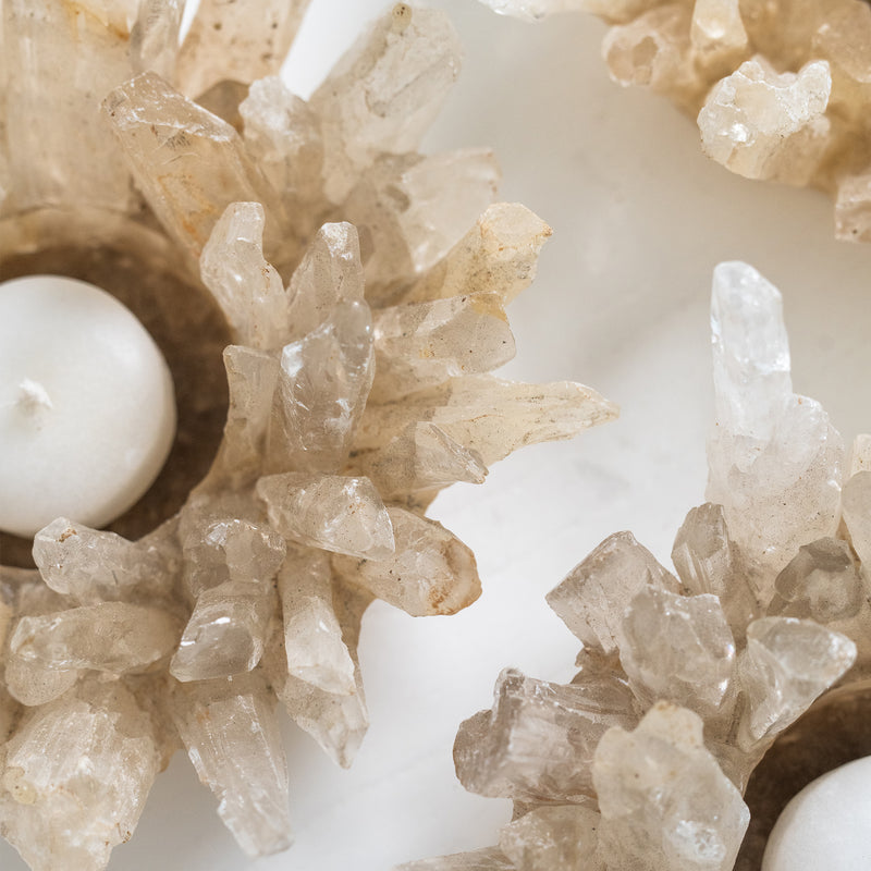 Quartz candle holders, made from 100% natural quartz. Each piece is unique and organic in shape.