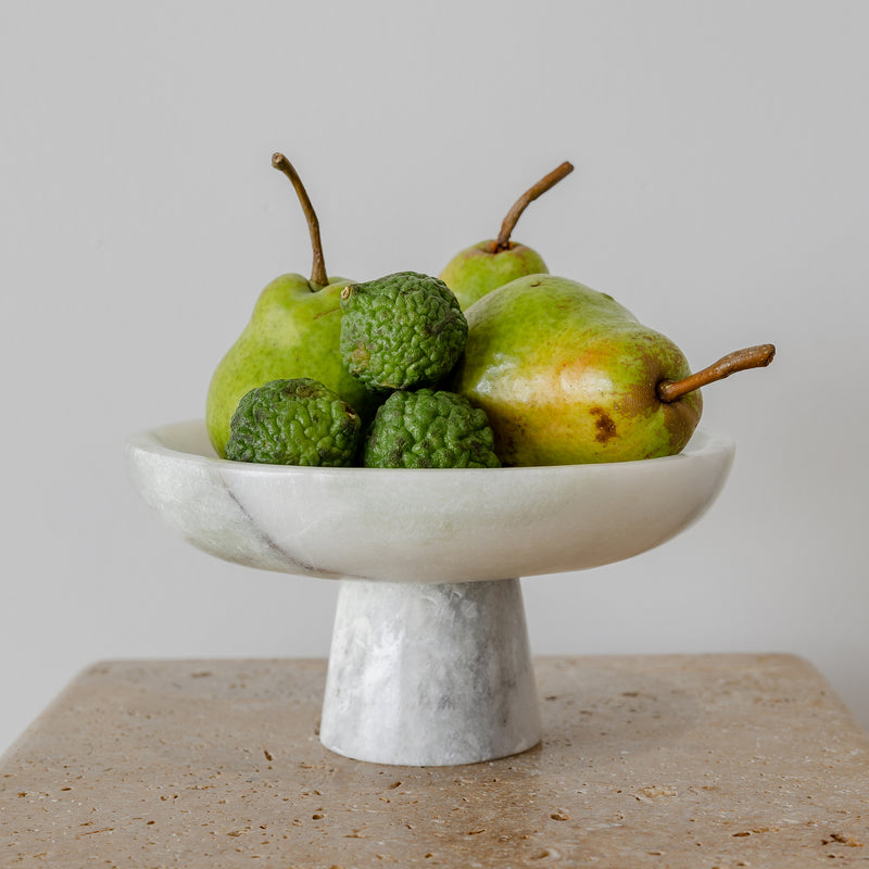 A sculptural accent for consoles, dining tables or coffee table styling, the Footed Bowl in Onyx Marble brings elevated form and natural elegance to any space. Featuring a shallow rounded bowl set atop a solid pedestal base, it offers a refined balance of texture and proportional perfect styled as a centrepiece or used to hold small decorative items.