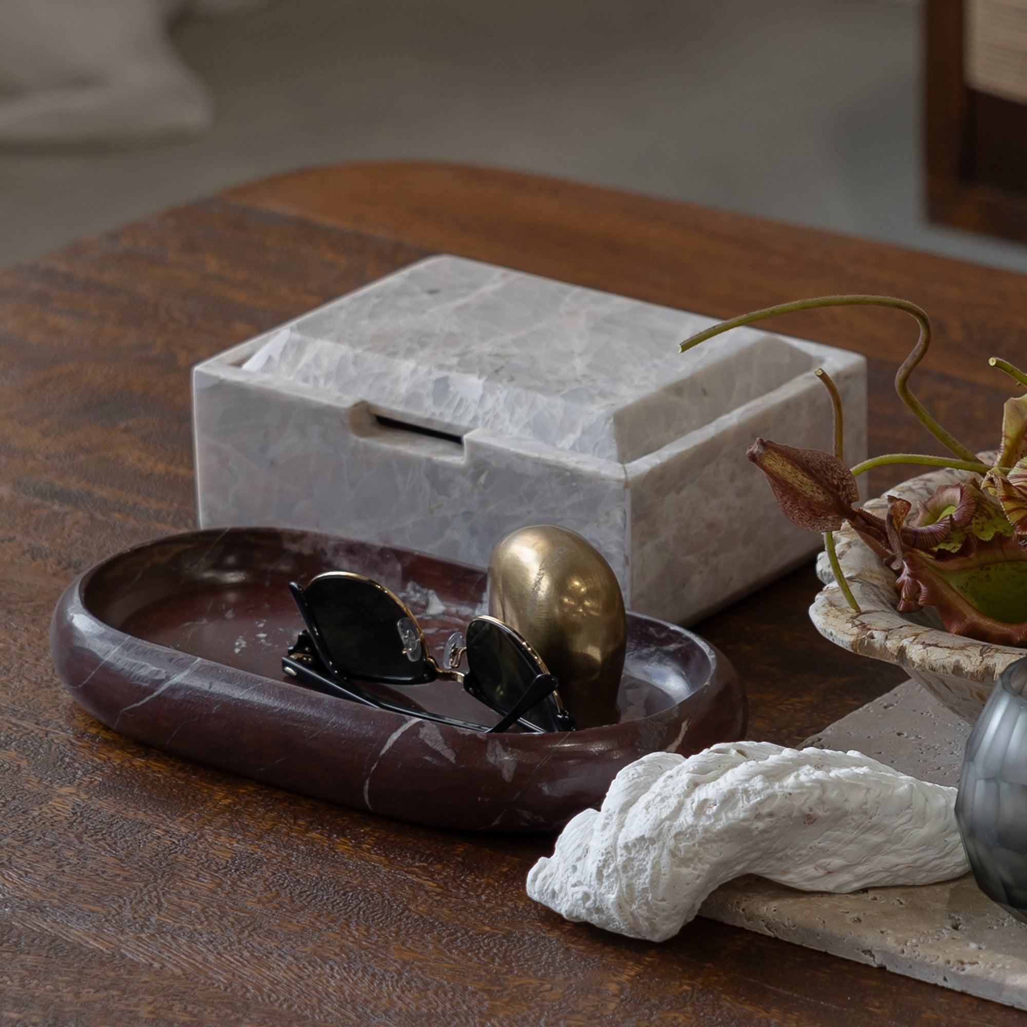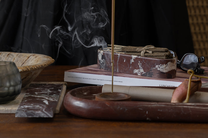A refined accent for consoles, coffee tables or dining styling, the Marble Oval Tray in Red Levanto brings rich colour and timeless sophistication to any interior. Defined by its elongated oval form and striking natural veining, it offers a beautiful balance of function and sculptural appeal perfect for serving, styling or organising everyday essentials.