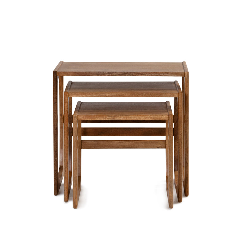 Constructed in solid mango wood with rustic matte finish. Simple cube shape with feature open side panels, available in three different sizes.