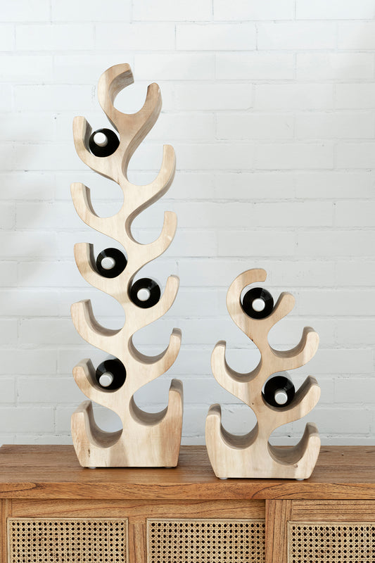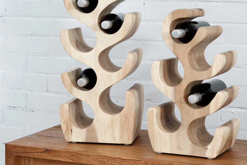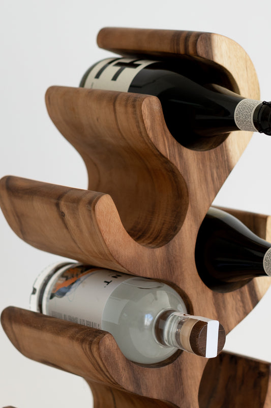 A unique and elegant way to display your wine, the Meh small wine rack is constructed from raw timber. Colours/finishes between items may vary and some slightly cracking can occur, due to the natural nature of the timber.