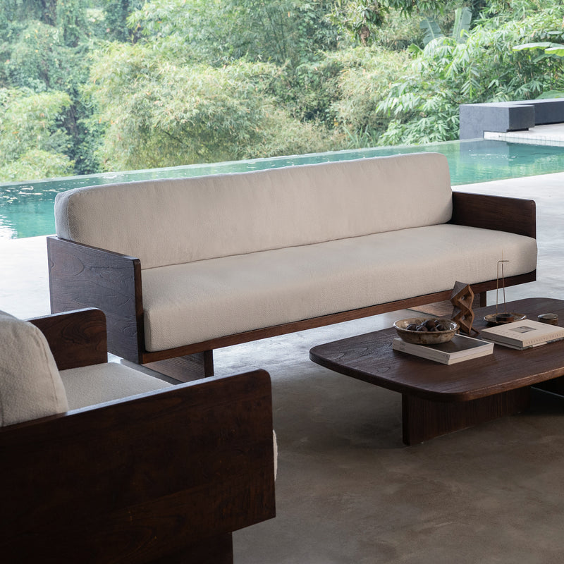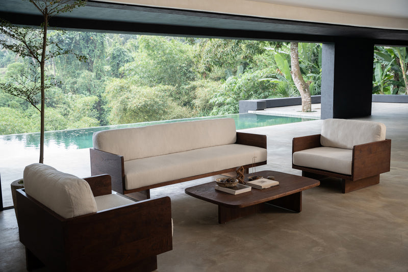 Defined by clean lines and a low, grounded profile, the Platform Sofa features a rich rustic walnut finish that brings warmth and depth to the living space. Generously cushioned seats and backrests create an inviting place to relax, while the structured timber frame offers a balanced, architectural presence. A timeless sofa design that sits comfortably in both contemporary and classic interiors.