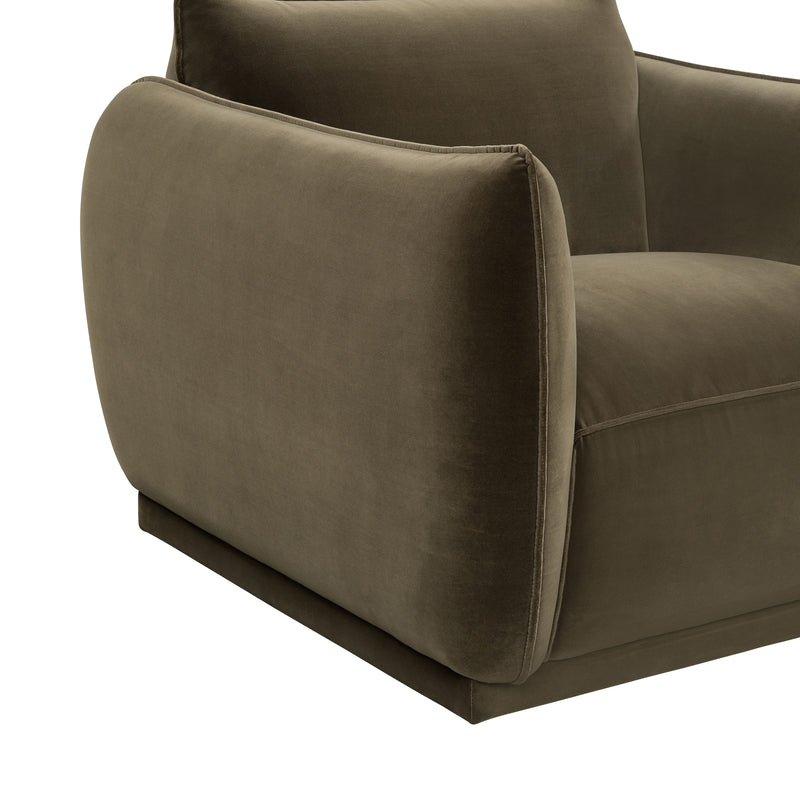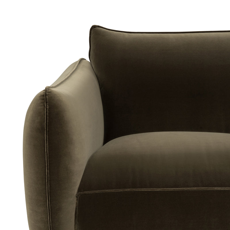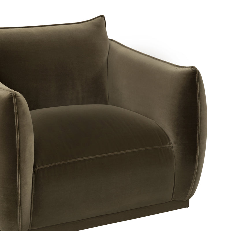 The Rufus Armchair is the perfect blend of sophistication and comfort, featuring a deep lounge seat with modern, masculine curves and complete with cotton velvet upholstery in Cyprus. The perfect occasional chair for any living room, study or bedroom.