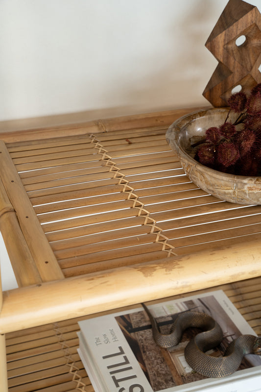 - Meticulously crafted using traditional bamboo joinery, a time-honoured technique passed down through generations. Each furniture piece is the result of a collaborative process involving several skilled artisans, each specialising in a different stage of production.