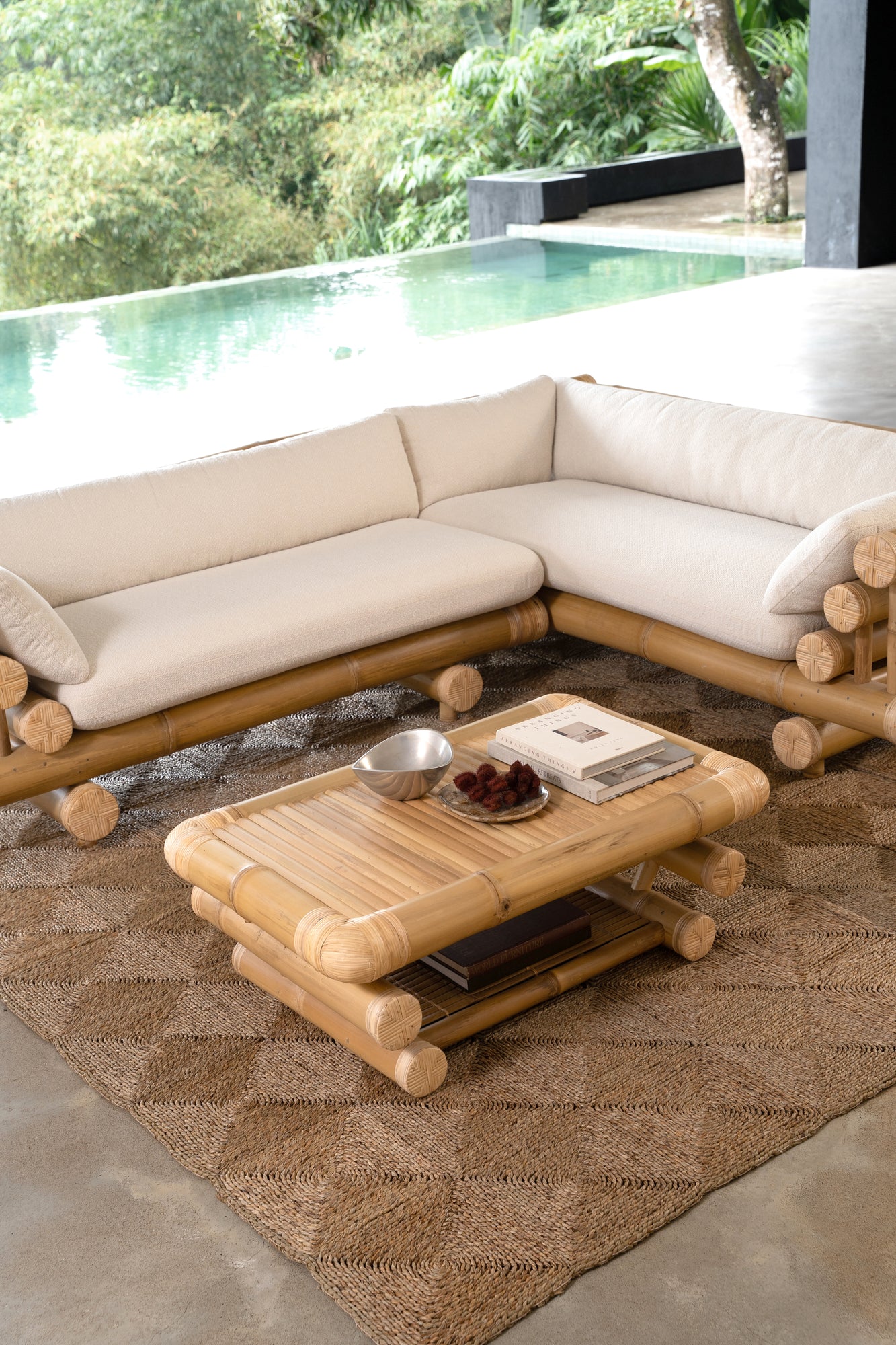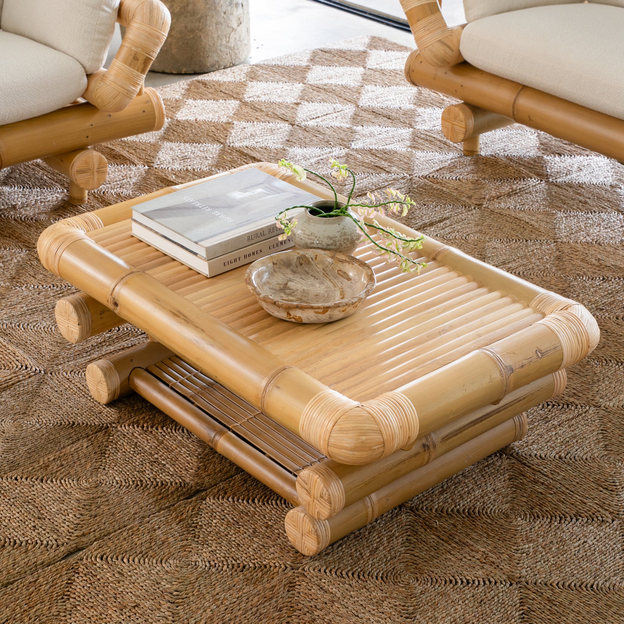 A clean-lined bamboo coffee table that grounds the living room with natural texture and modern warmth. A timeless centrepiece for contemporary interiors.