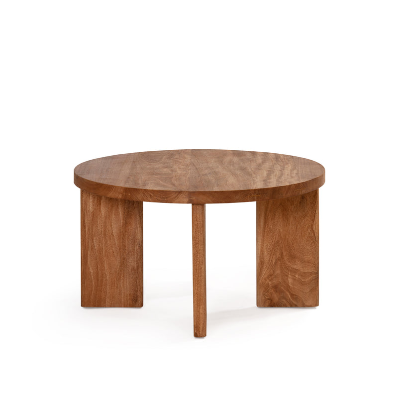 The West Coffee Table, constructed in sustainable mango wood with rustic matte finish. Featuring unique angled leg design and available in a range of shapes and finishes