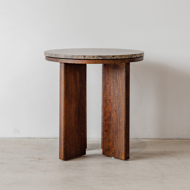 West Side Table — Rustic Walnut/Choc Marble