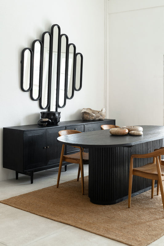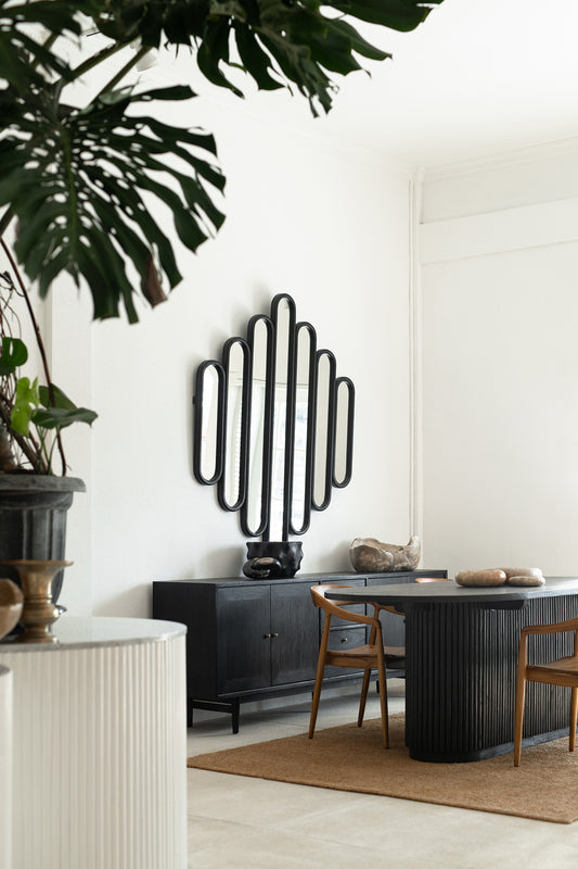 This stunning, eye-catching Zola mirror will make the perfect statement piece for your home. Featuring a solid mango wood frame in black.