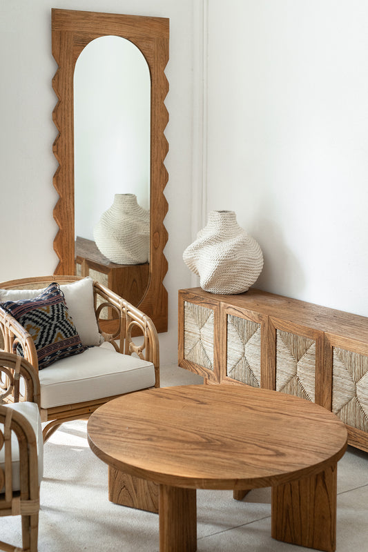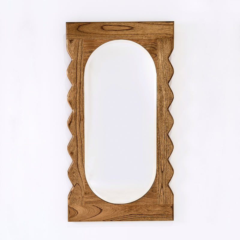 Add character and charm to your space with the Presley Mirror. Featuring a solid mindi wood frame in antique finish with a distinctive wavy pattern. Can be used in your bedroom, hallway or living room space.