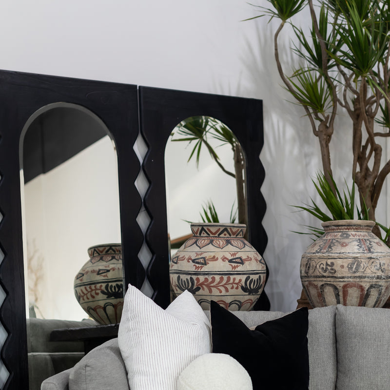 Add character and charm to your space with the Presley Mirror. Featuring a solid mango wood frame in black finish with a distinctive wavy pattern. Can be used in your bedroom, hallway or living room space.