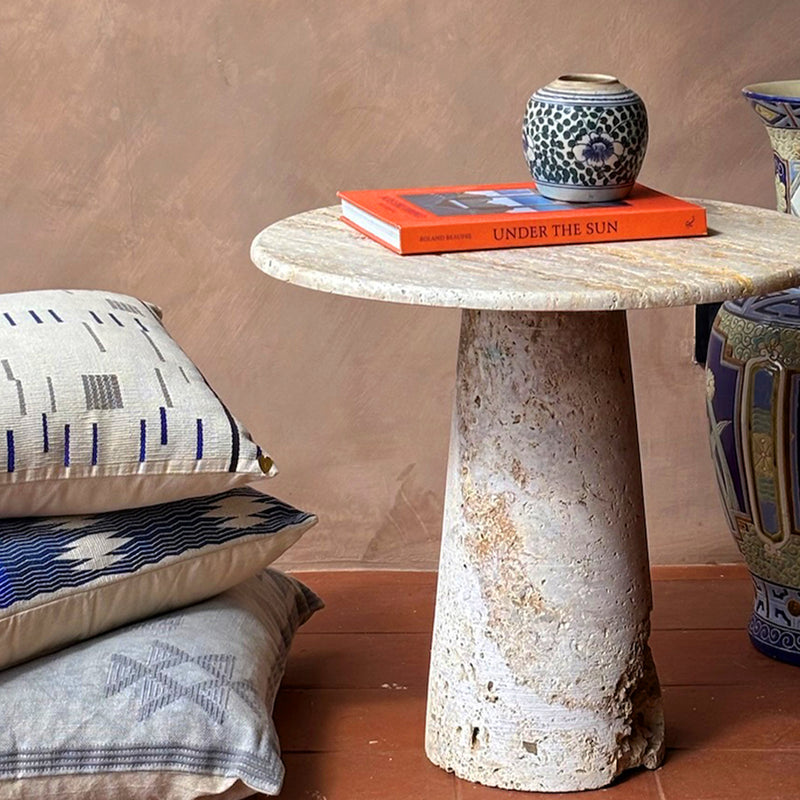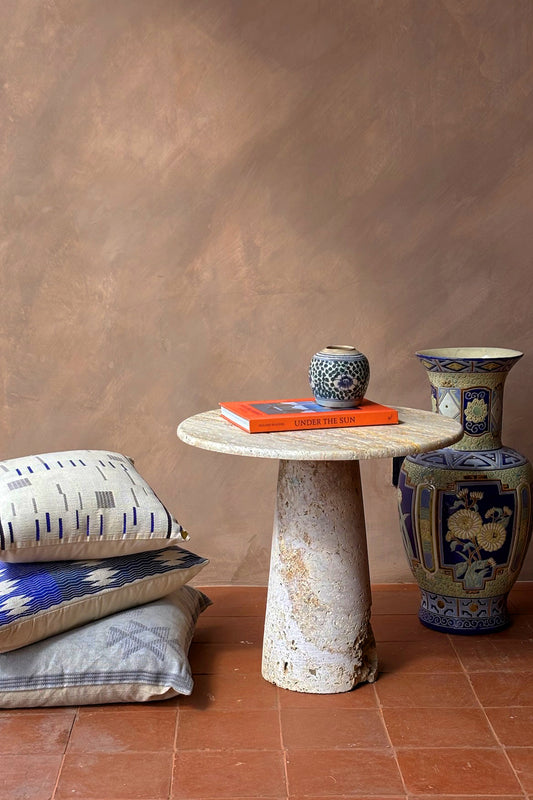 Crafted from solid travertine, this side table celebrates the raw elegance of nature. Whether styled with art, florals, or as a statement side table, it lends timeless character and sculptural presence to any interior.