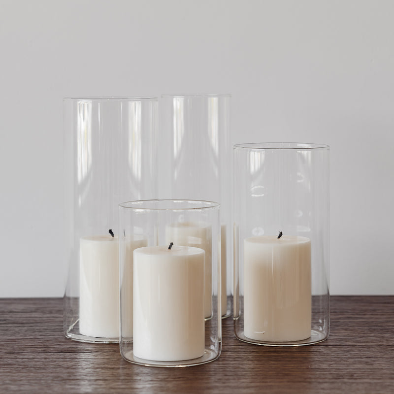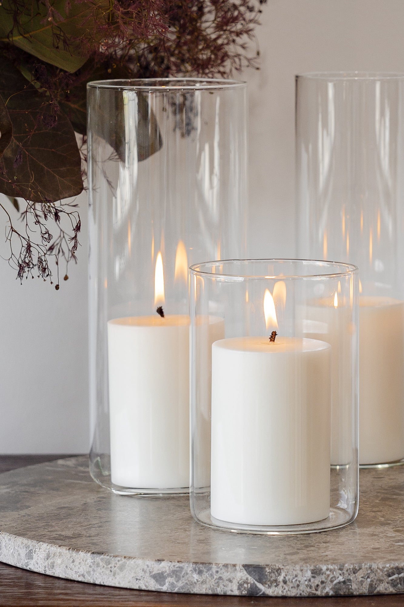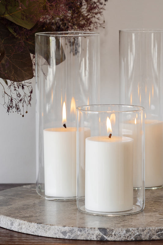 The Victoria Wide Candle Holder brings a soft, understated glow to interiors. Crafted from clear glass with a wide cylindrical profile, it is designed to hold pillar candles while allowing the candlelight to gently diffuse through the glass. Elegant and versatile, this piece layers beautifully on consoles, dining tables or coffee tables, creating warmth and atmosphere in any space.