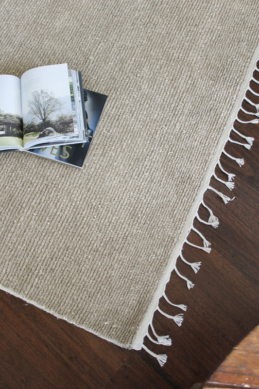 The Albi Wool rug features a beautiful low pile, that is soft and comfortable under foot, and the woven tassel detailing adds an ease and effortlessness that makes styling the Albi range a breeze.