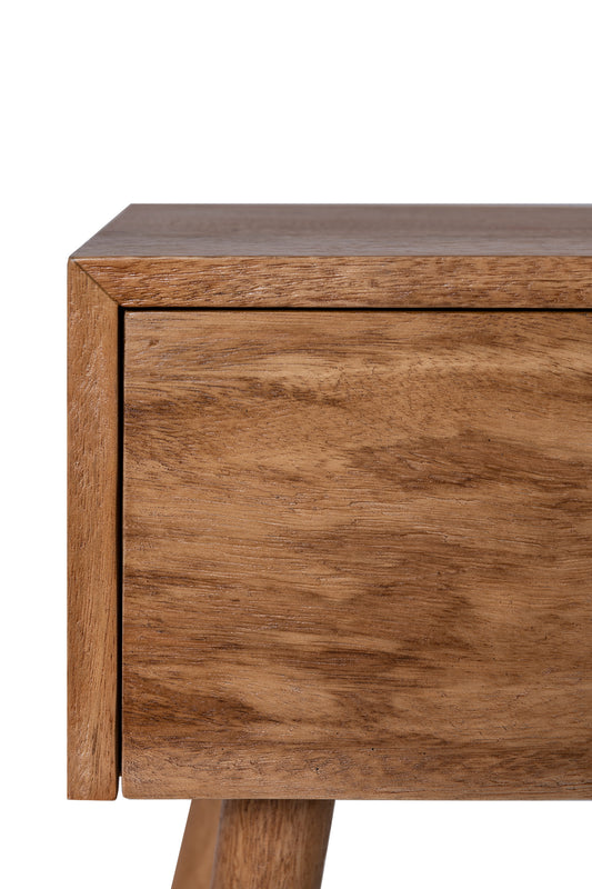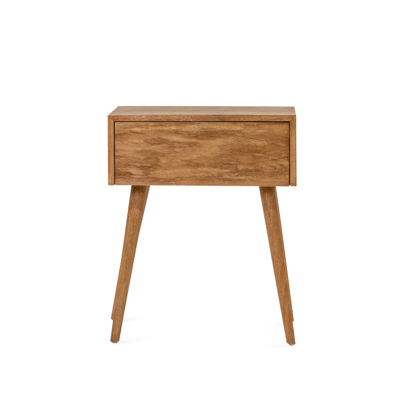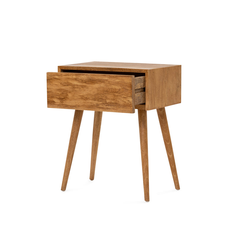 The Amsterdam bedside without shelf has one drawer with four tapered legs. Built from solid mango wood in rustic matte finish.