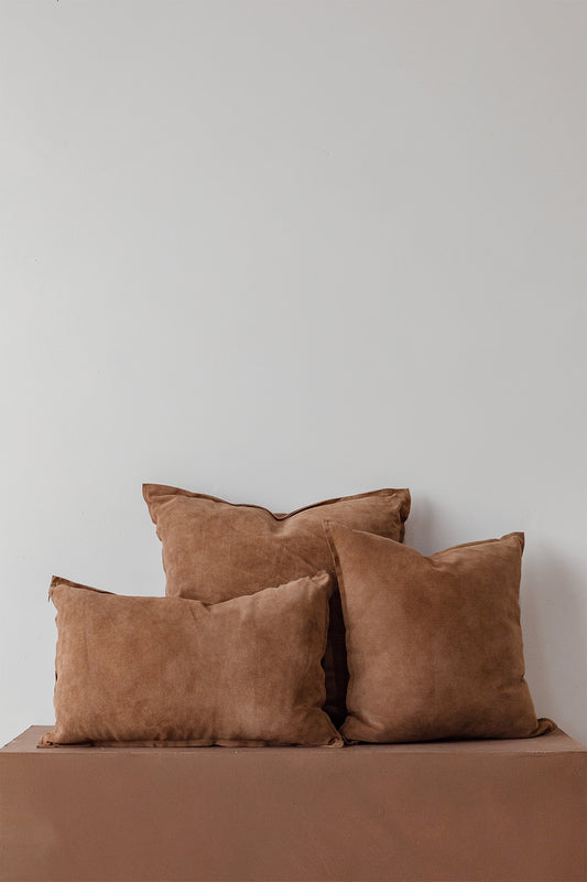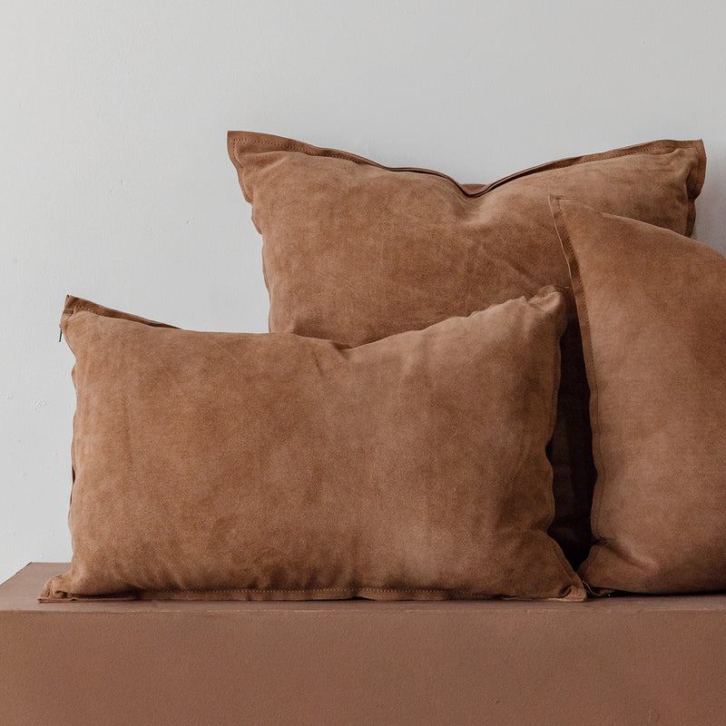 The Austin Suede cushion features a supple suede front and a soft cotton backing. Available in taupe, chocolate and saddle.