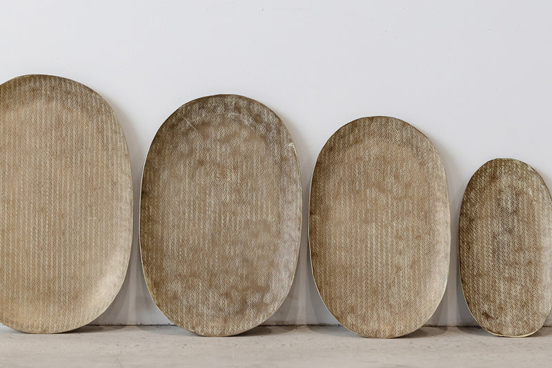 Beautiful hand crafted beaten oval tray in an antique green finish. Perfect for entertaining or a place to organise your treasures. Each piece is unique with slight variations in pattern, colour and size.