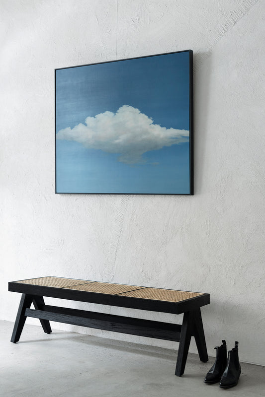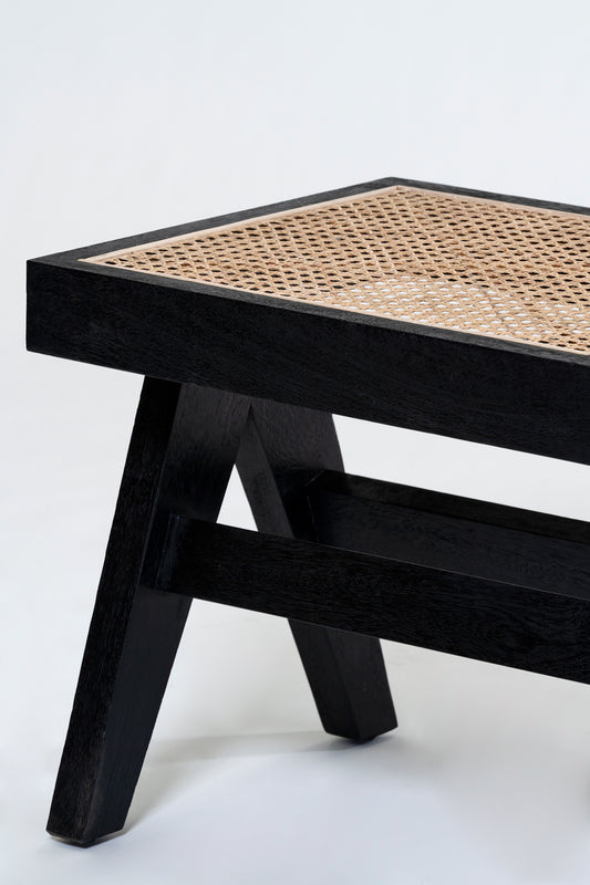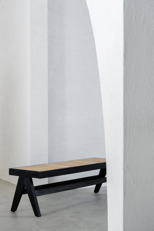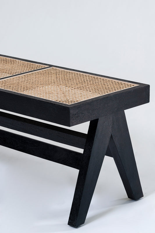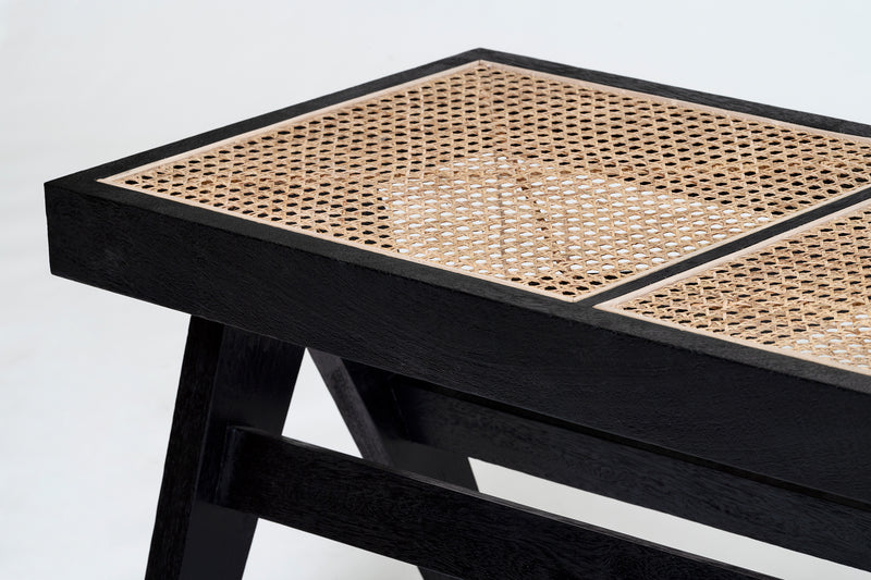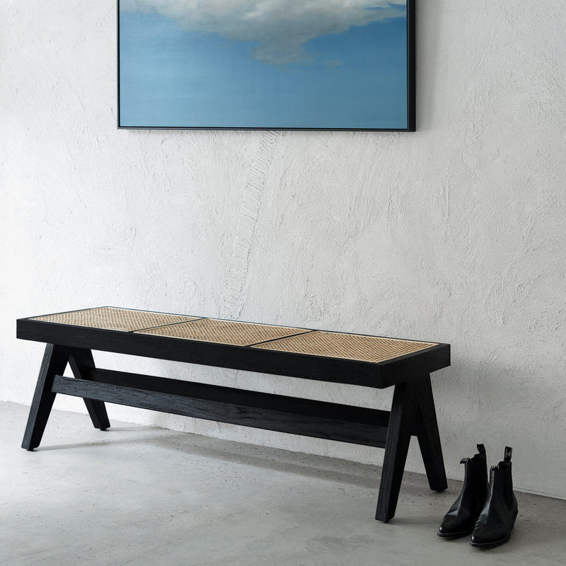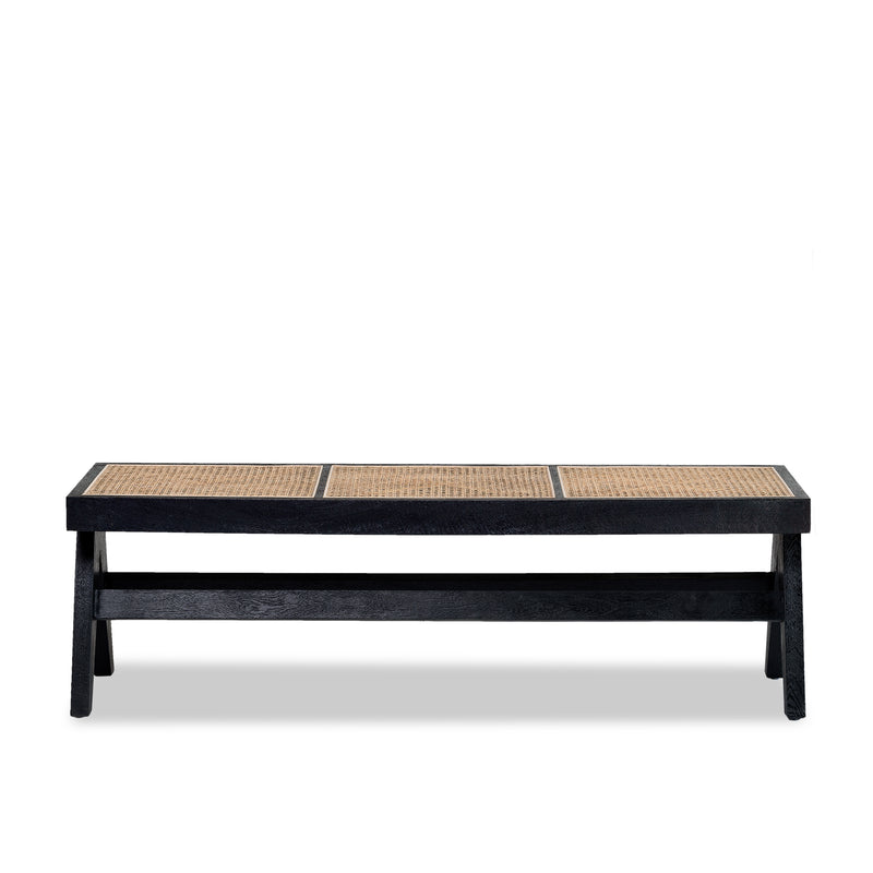 Belagio bench, made from mango wood in Black finish frame. Complete with natural rattan inserts.