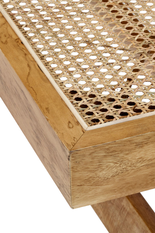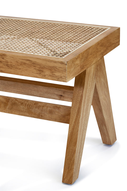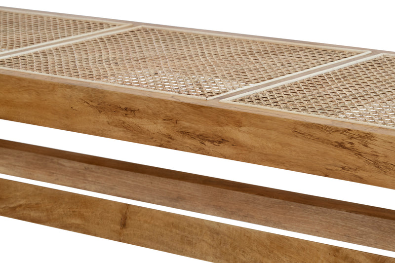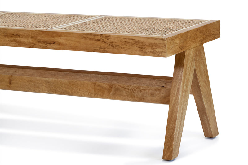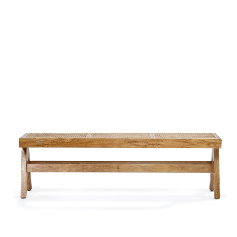 Belagio bench, made from mango wood in a Natural Sealed finish. Complete with natural rattan.