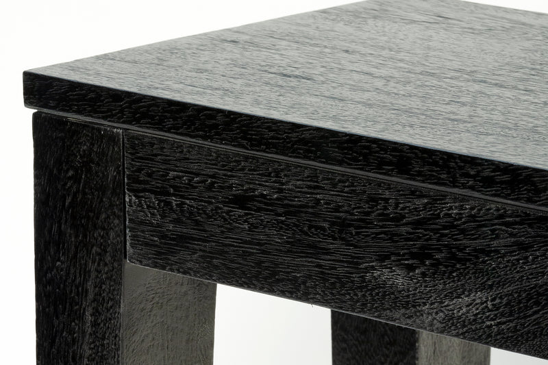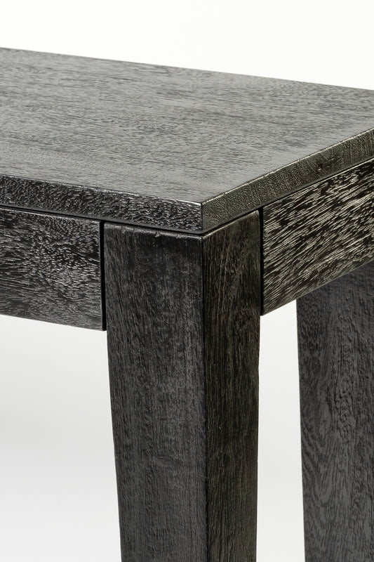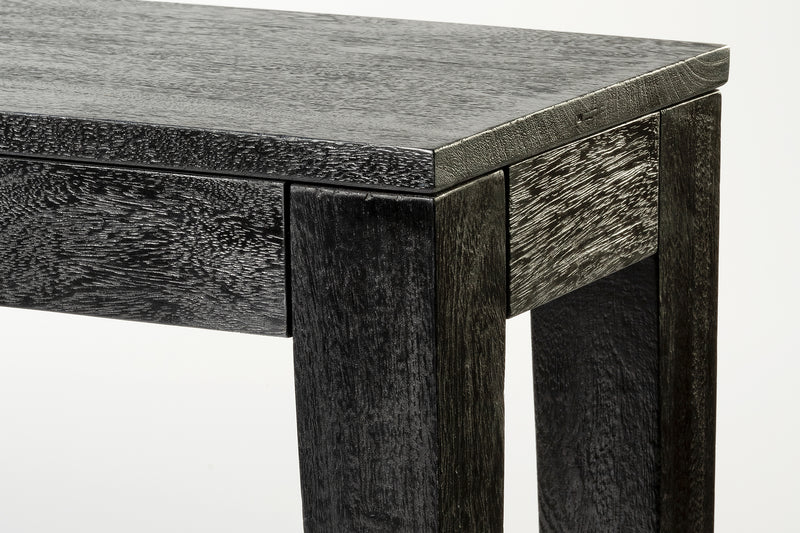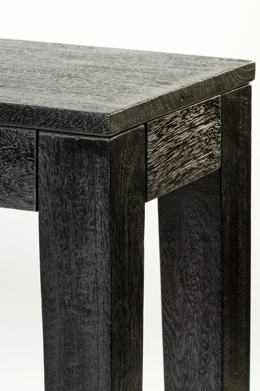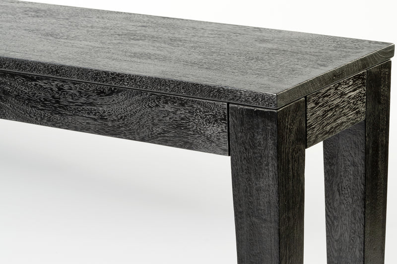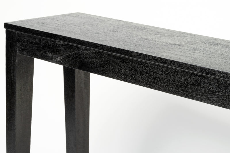 Built from mango wood with solid timber surface in Black finish. Compact and narrow, the Buddha console is versatile for any room. Available in four different lengths with solid wood top or a marble top.