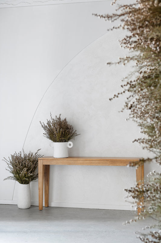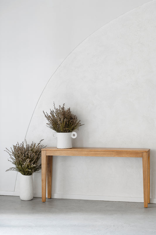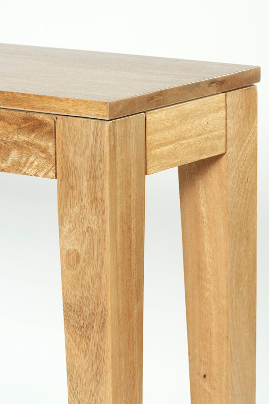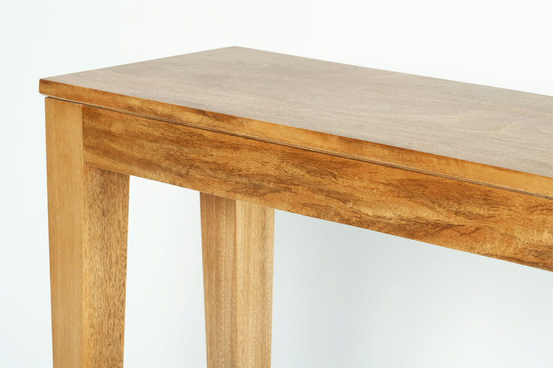 Built from mango wood with solid timber surface in Natural Sealed finish. Compact and narrow, the Buddha console is versatile for any room. Available in four different lengths with solid wood top or a marble top.