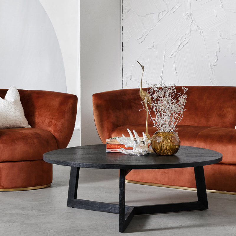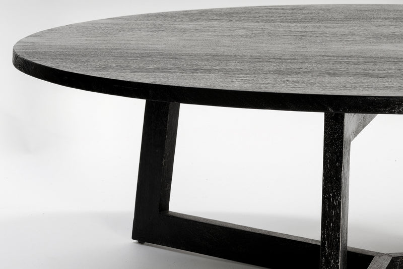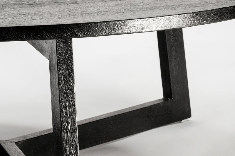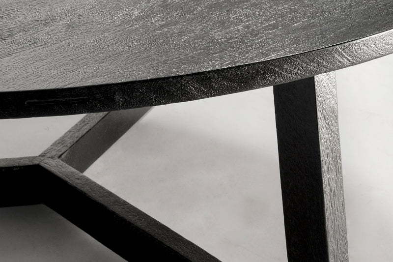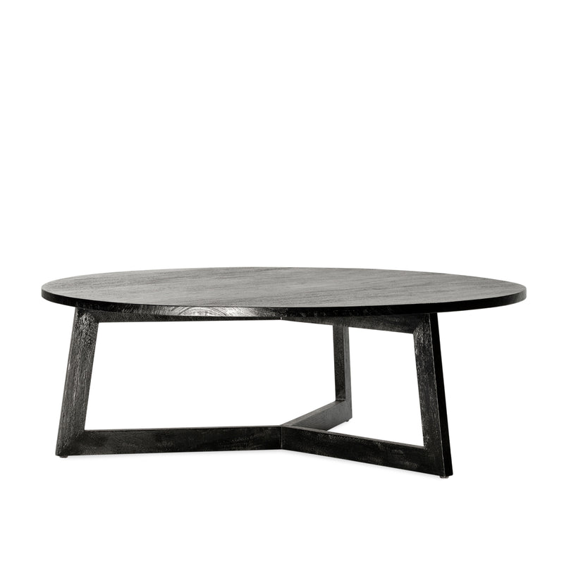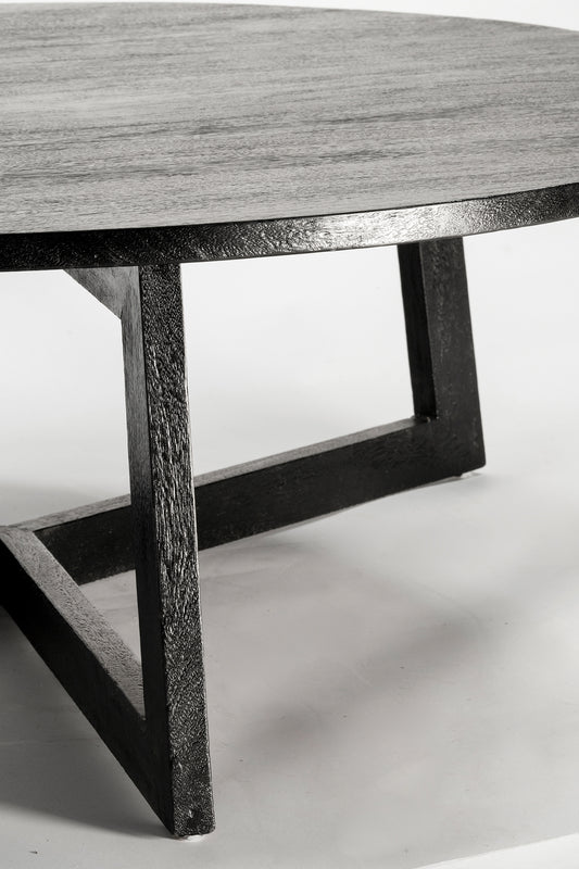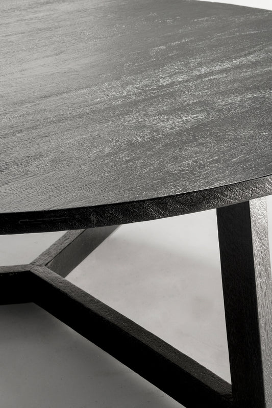 Constructed in solid mango wood with Black finish. Round top with angled leg base. Available with solid wood top or marble top.
